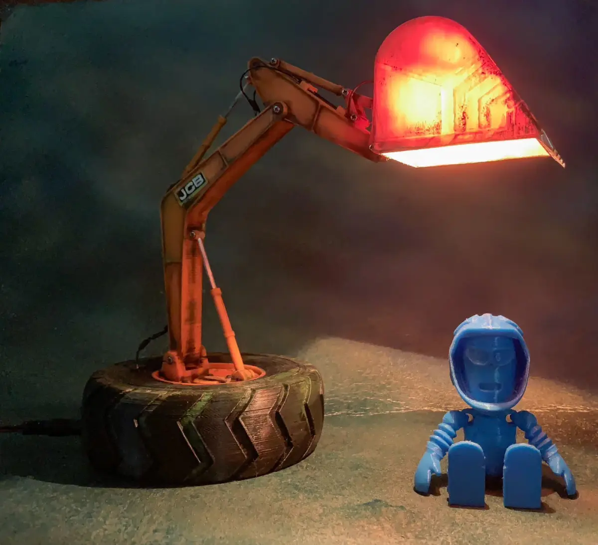 Introducing the Luminous Loader Arm 3D Table Lamp Design: Illuminate Your Space with Industrial Elegance!