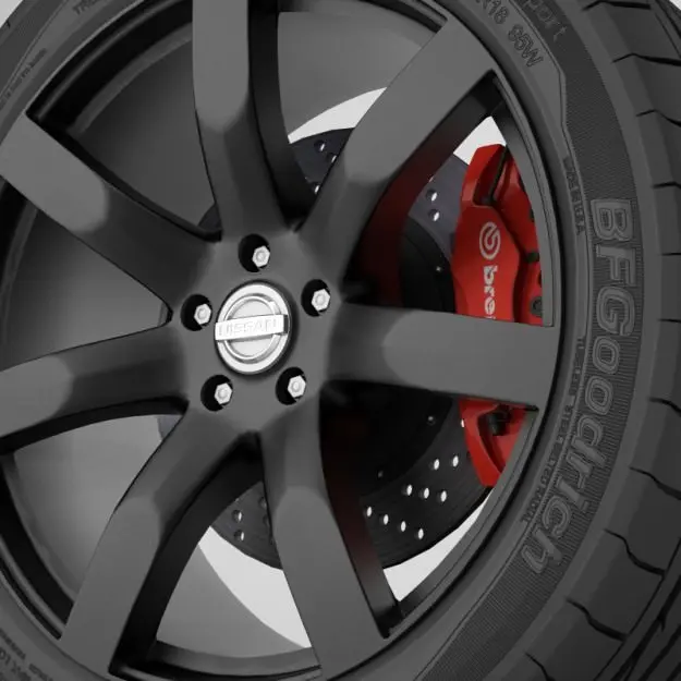 High detailed model of Nissan Juke R rim with Tyre, caliper and brake disc. Model is made in 3ds max 2009 and rendered in Vray 1.5