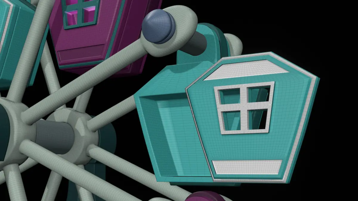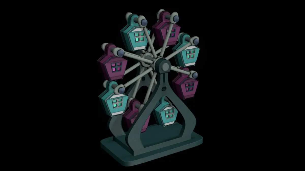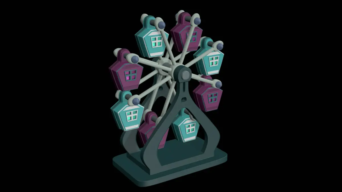 A coffin-shaped Ferris wheel, creative design concept,make in blender 3.6