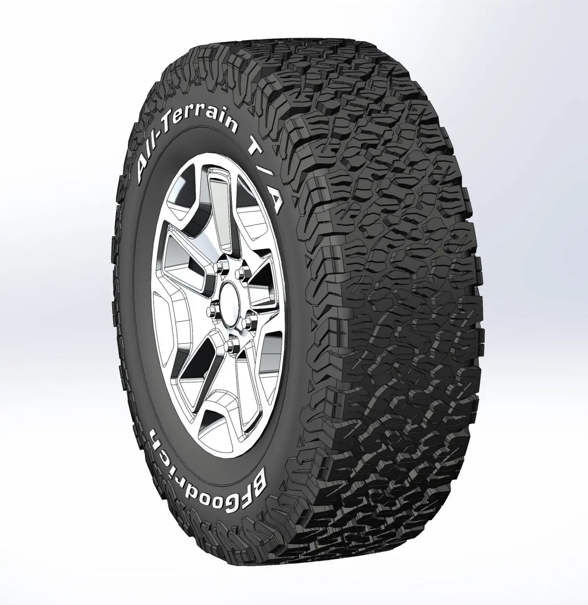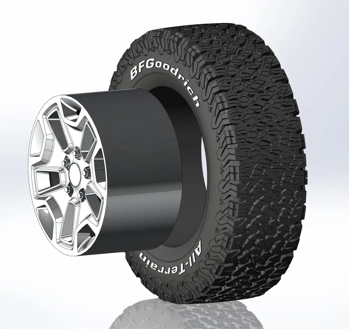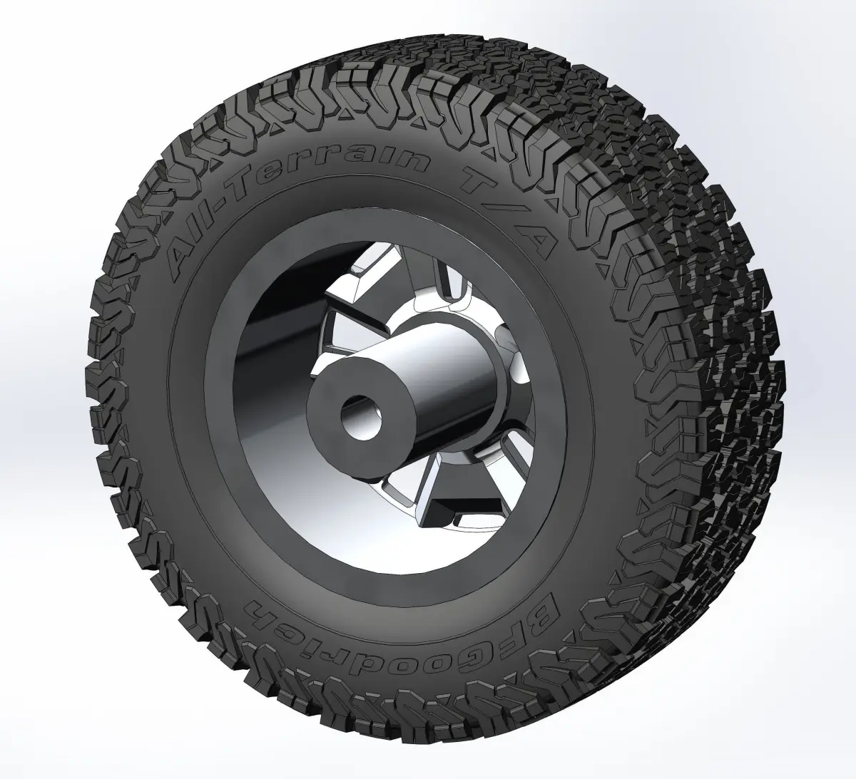 3D-printable wheels (rims, tyres and decorative caps separately) for scale or RC model . Rim - Quadratec Hardrock 17x8,5; Tyre - BFGoodrich All Terrain T/A KO2 275/65 R17