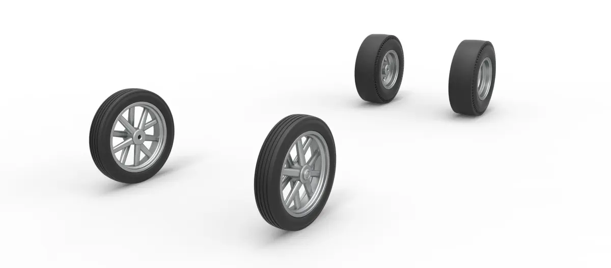 Wheel Set of Vintage Front engine dragster V6 Scale 1 to 25 3D print model