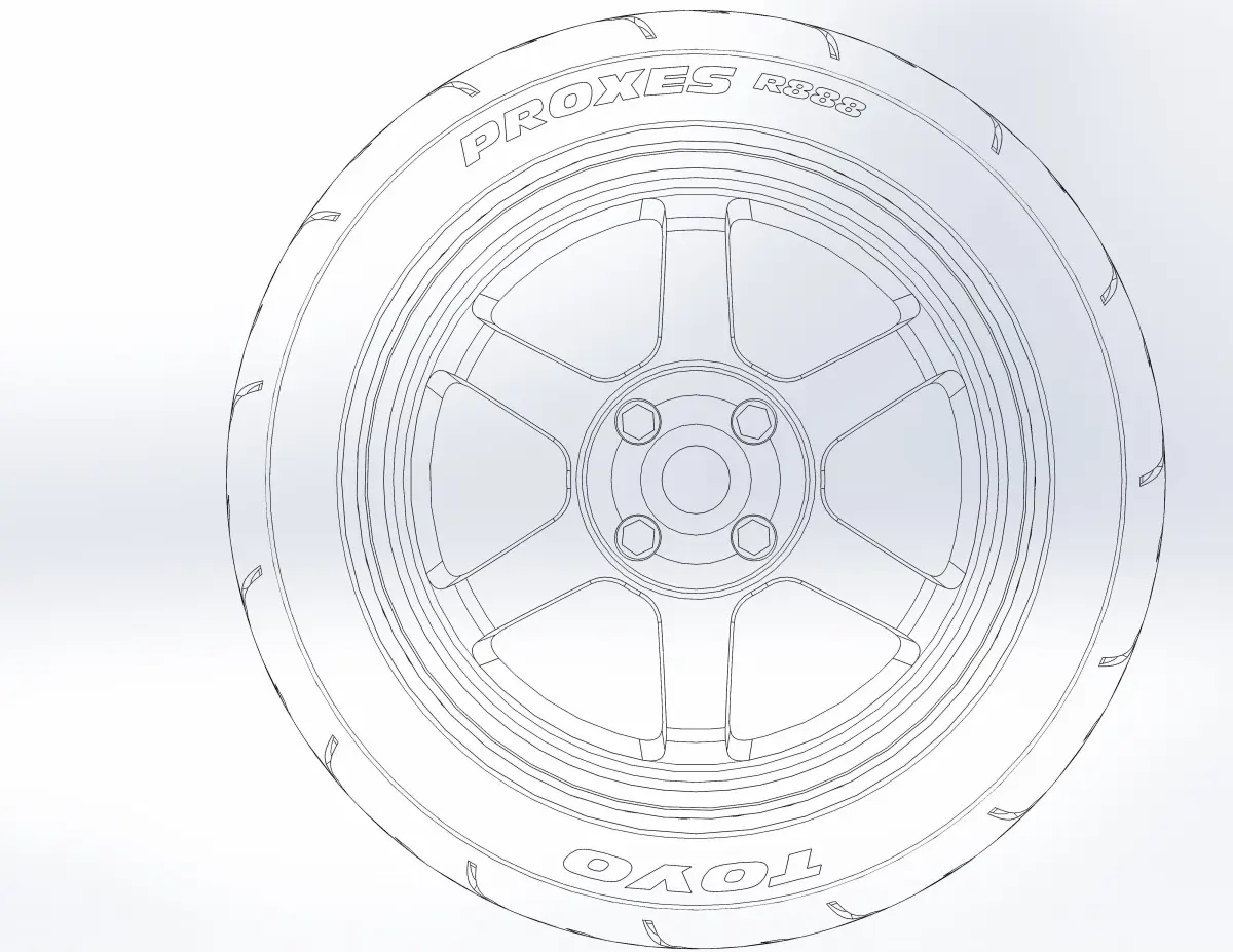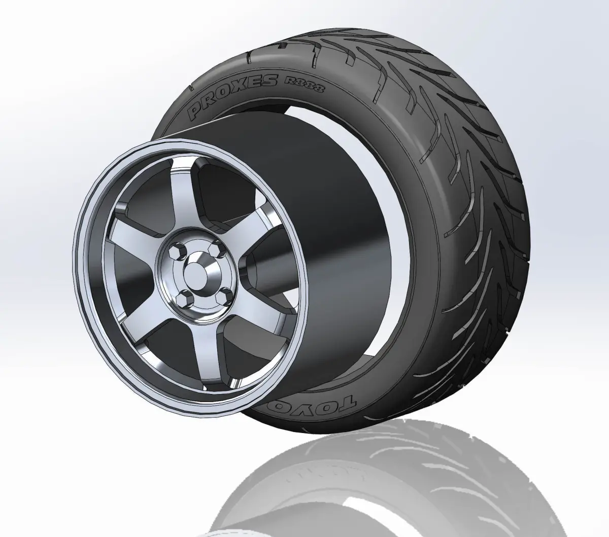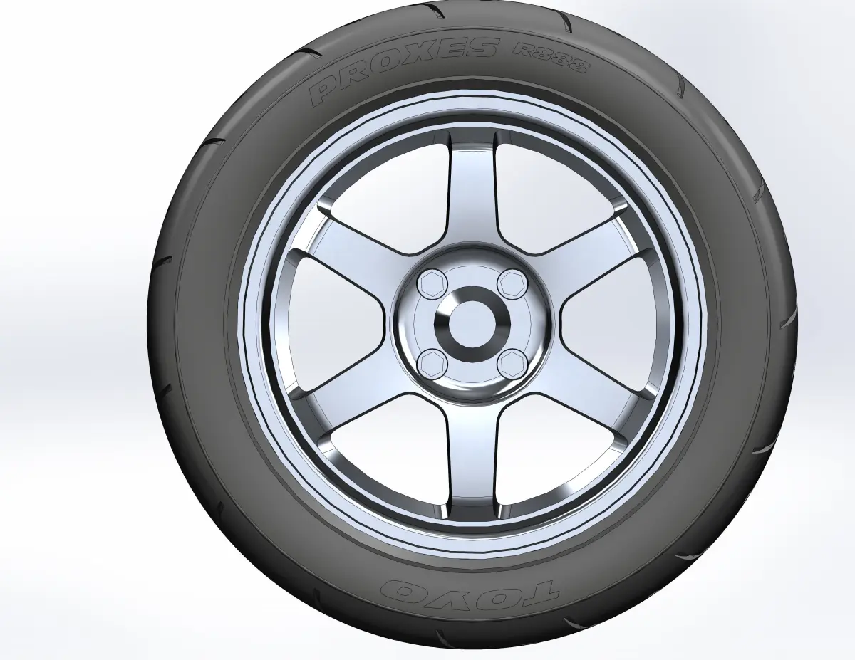3D-printable wheel for scale model, rim and tyre separately . Rim: TE37 design, 15x7,5; Tyre: TOYO PROXES R888 225/45 ZR15
