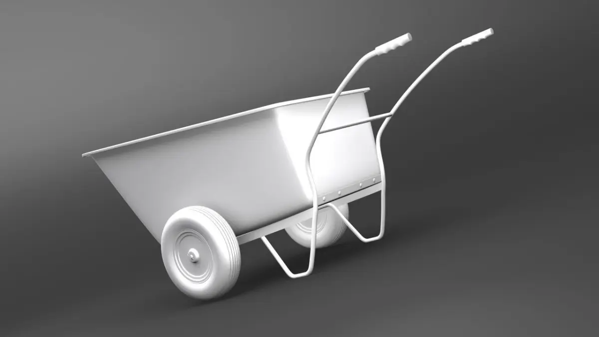 Detailed wheelbarrow model with materials