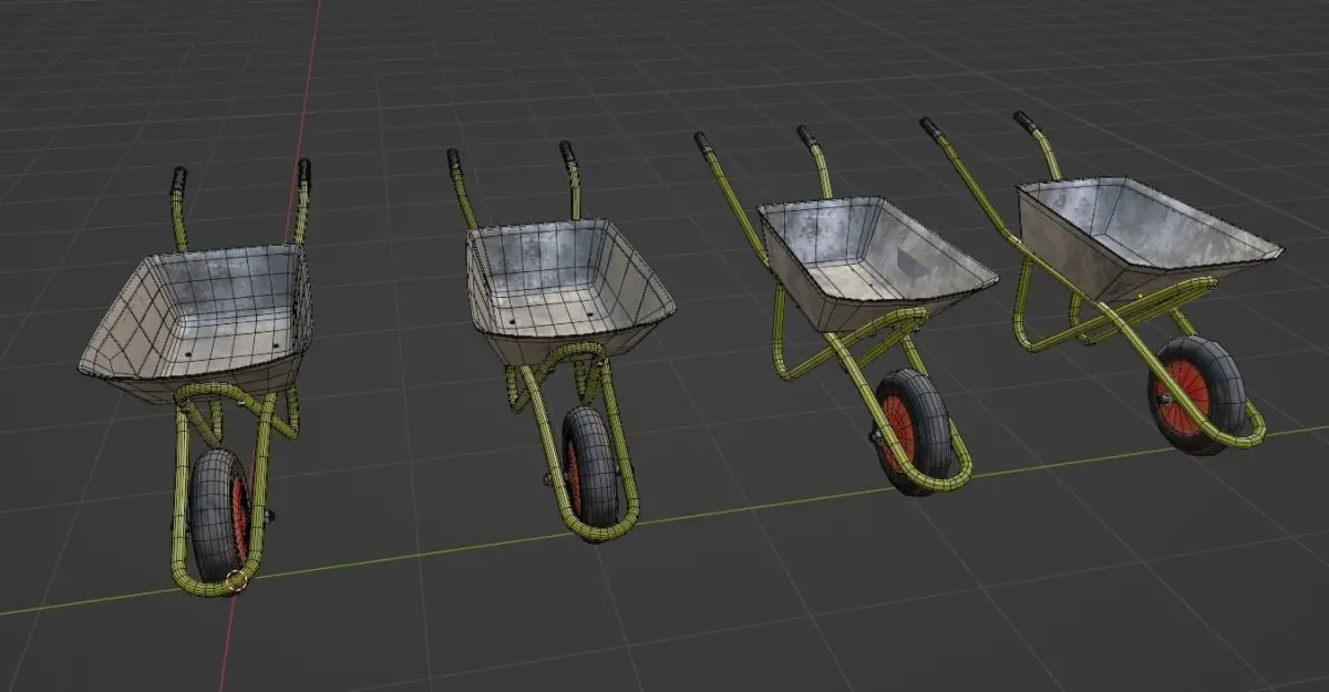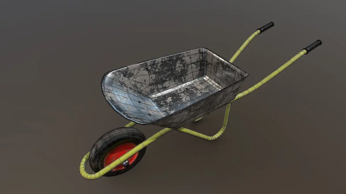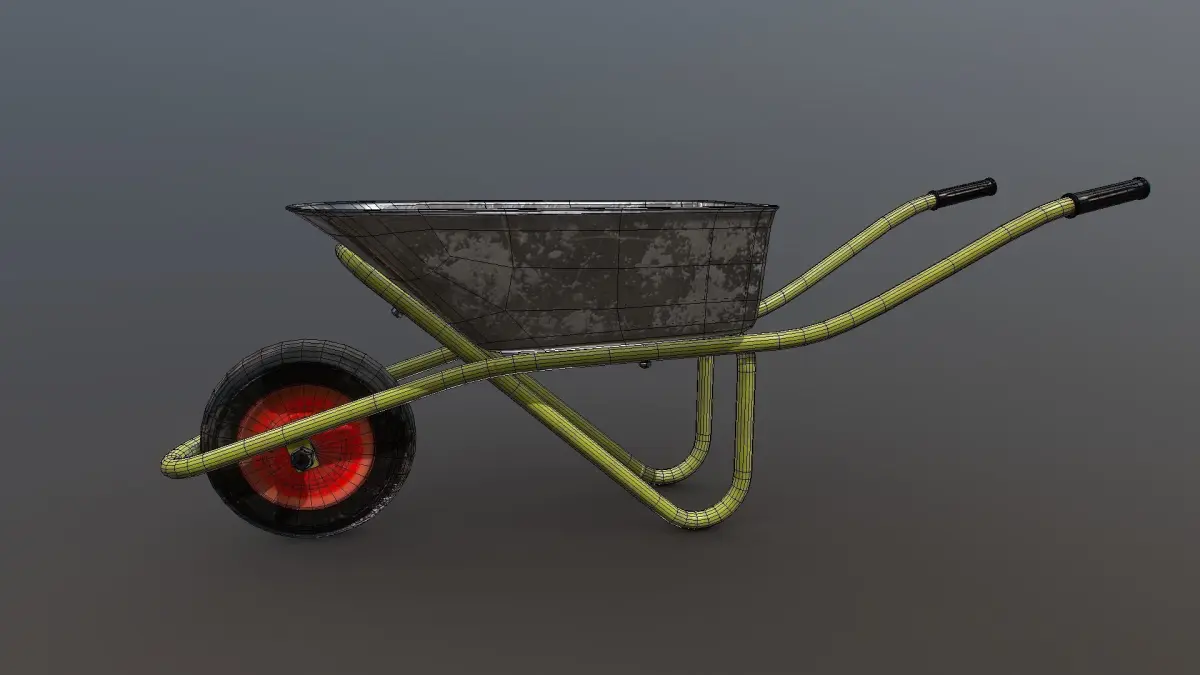 Brief description of the model:Wheelbarrow (trolley) for gardening or construction work. Great for garden or construction scenes, a versatile model for many situations. There is a ready-made LOD group for optimization in game engines.