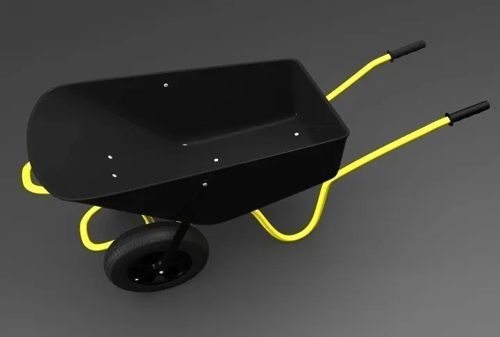 Detailed wheelbarrow 3d model with materials