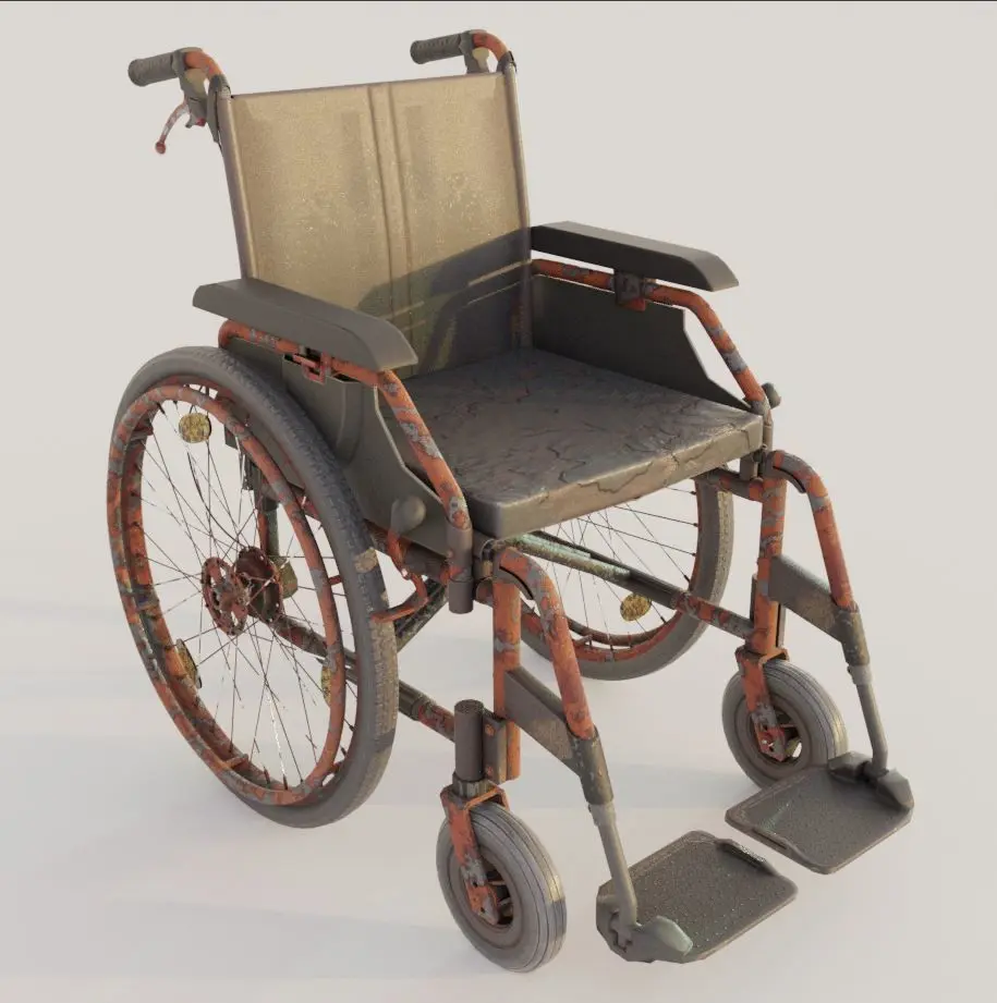 Here is the low-poly and pbr-textured rusty and dirty version for the hospital wheelchair.