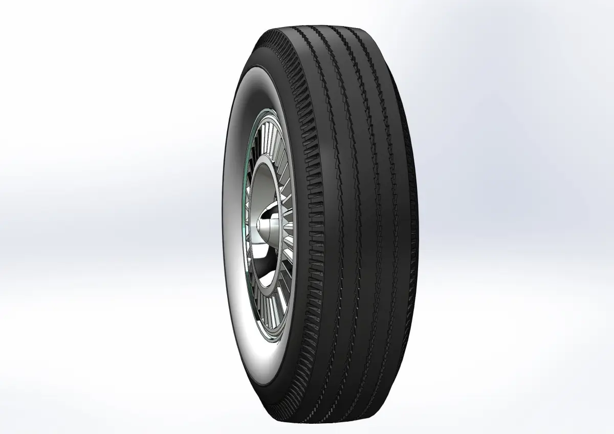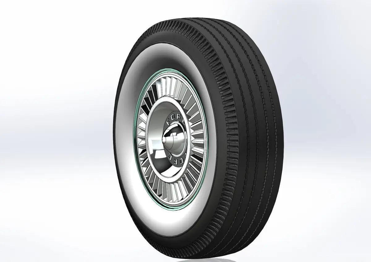 3D-printable wheels Fairlane 1957 (rims and tyres separately) for your scale or RC model. Rims: 14x5.5; Tyres: 7.50-14 with a detailed tire tread pattern