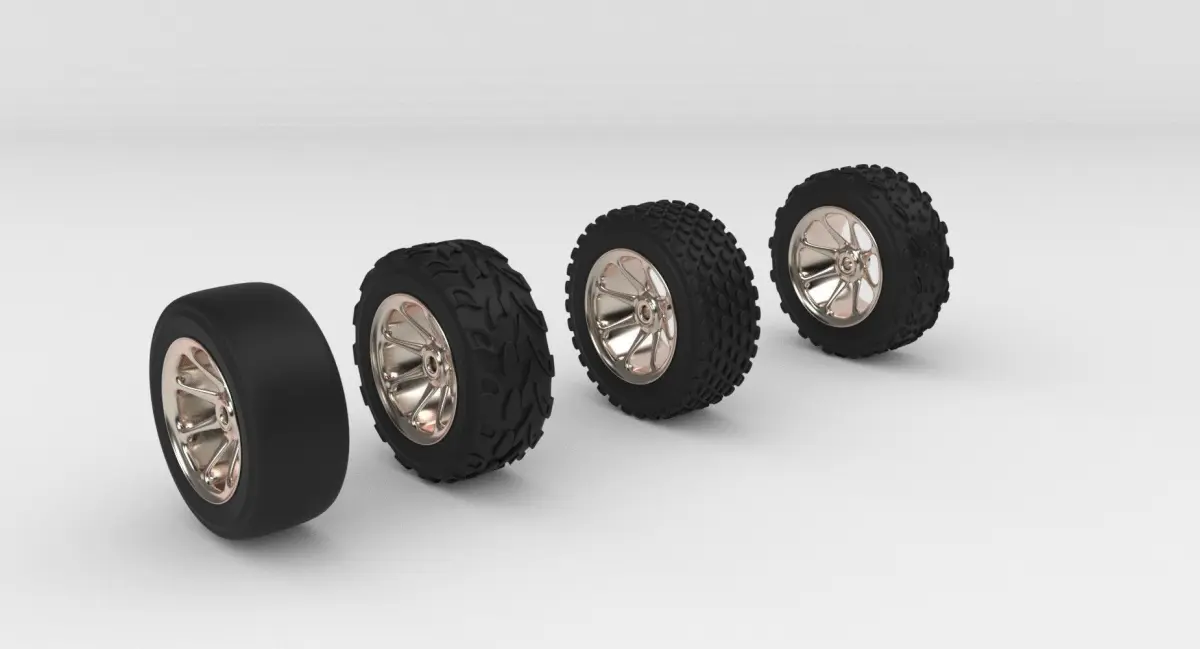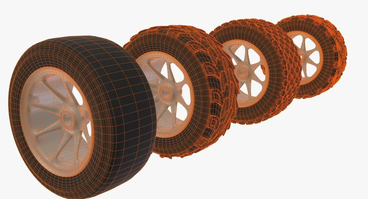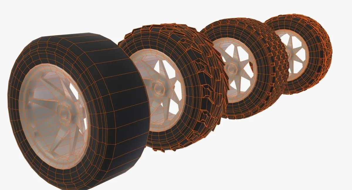 Four types of wheels.Only quad polygons for subdivision.Polygons: without sub-d from 976 to 3984.Size about 10 cm.