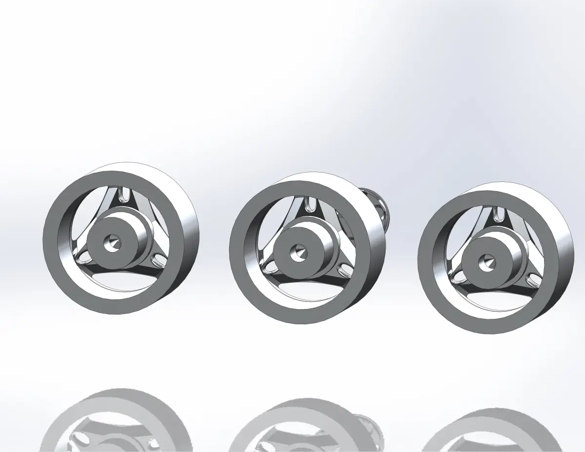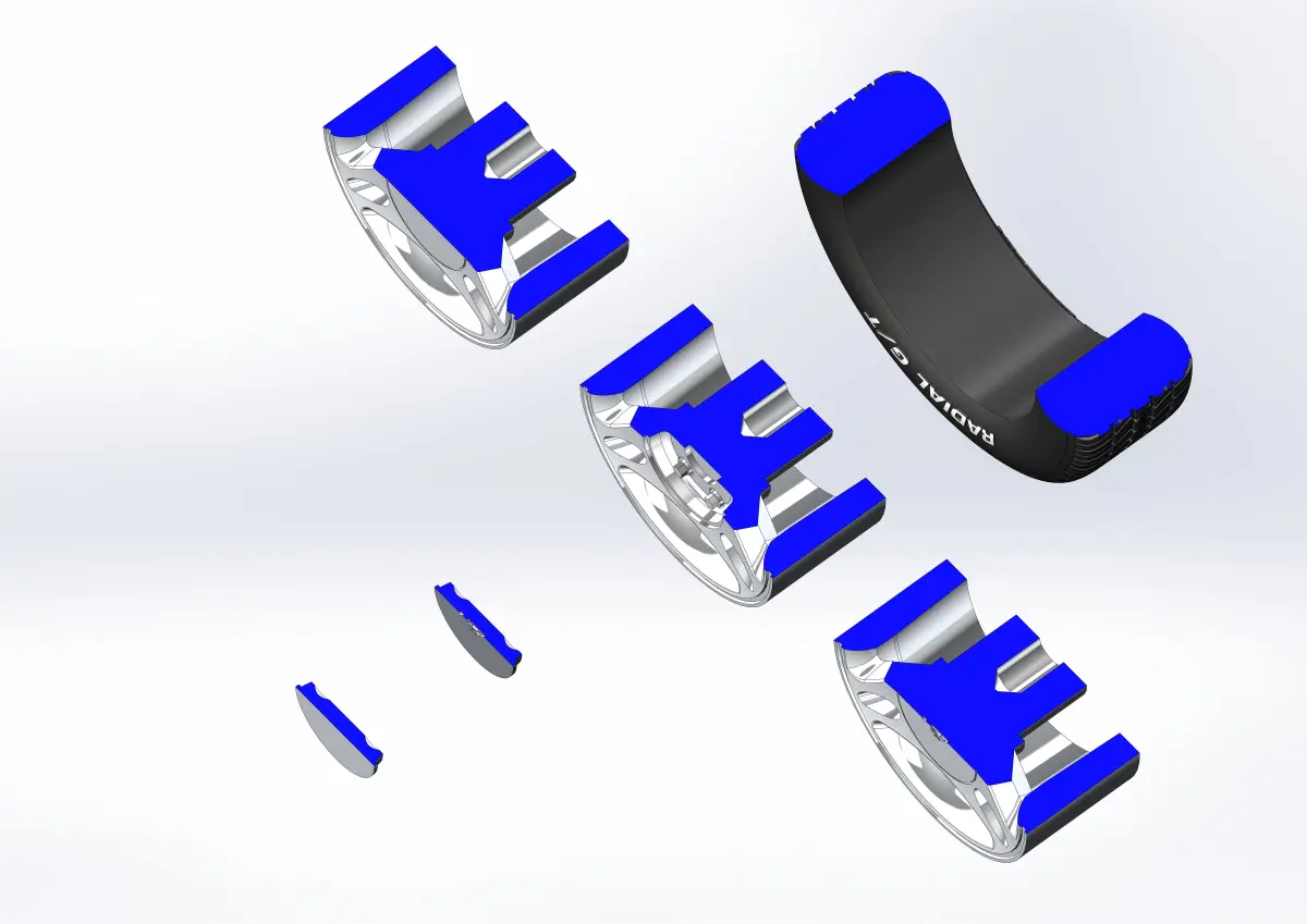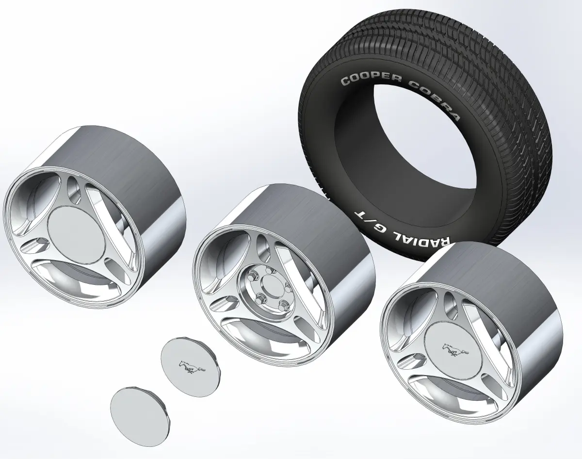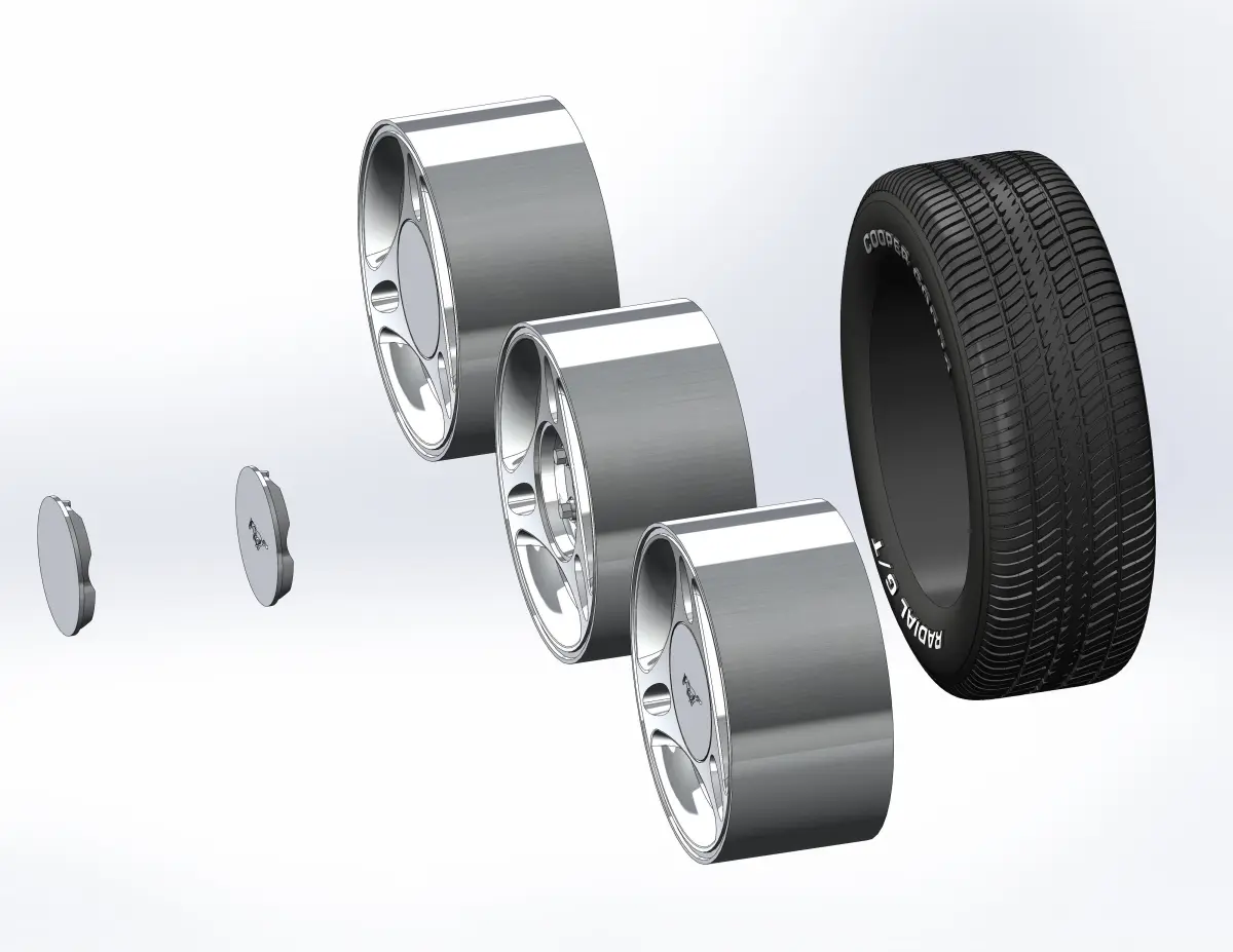 Rim, tyre and decorative cap is separate objects. The model of rim is offered in two versions - cap and rim separately and as one body. If you need to make a hole for an axis of a specific size - please write to me