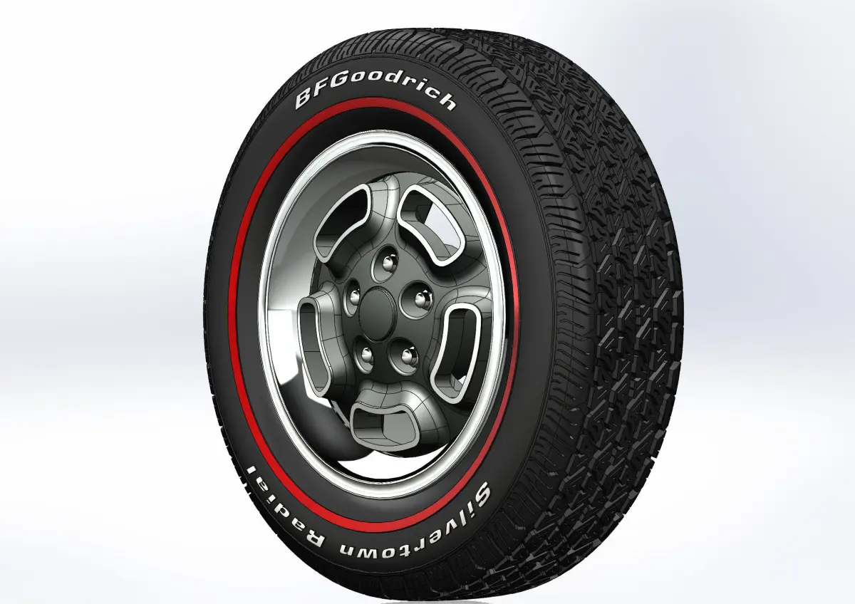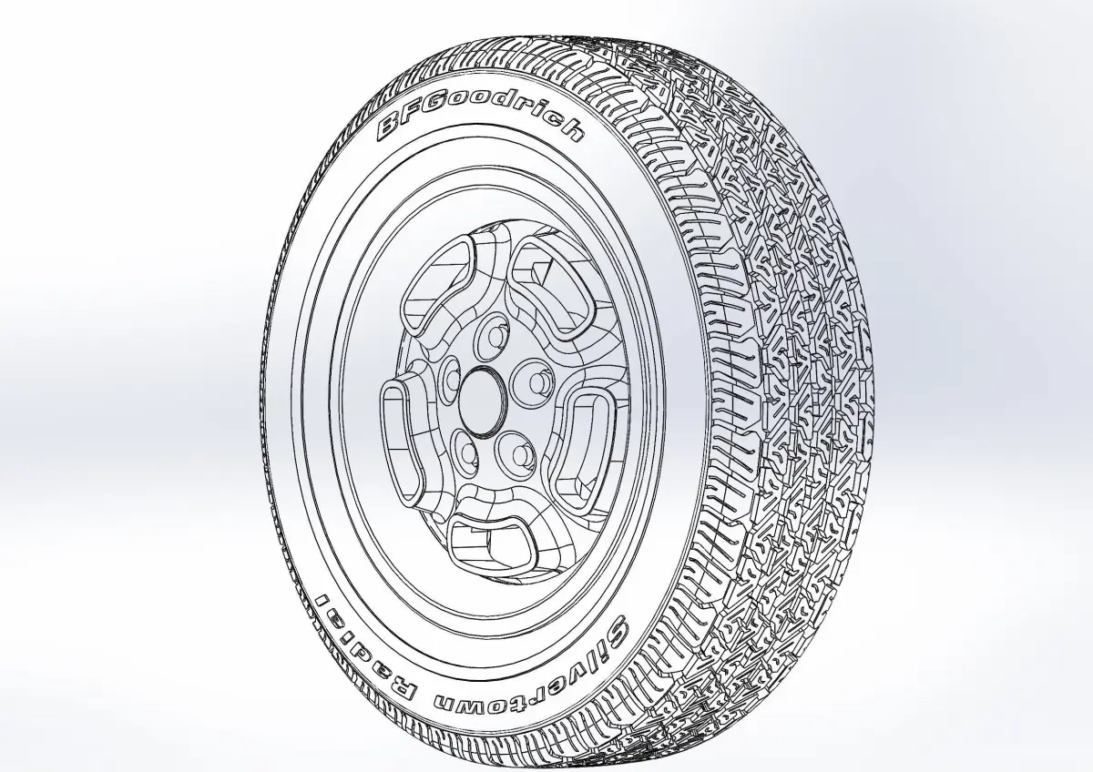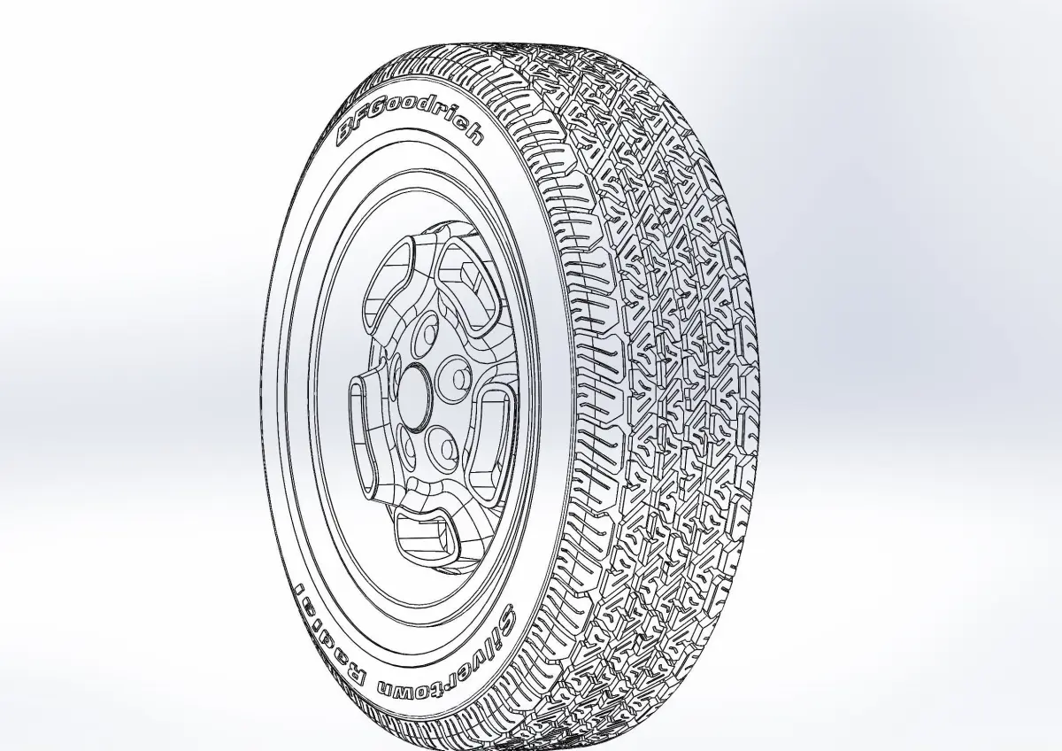 3D-printable wheels for your scale- or RC model. Rims - Kelsey-Hayes W23 recall - 15x6; Tyres - 205/65 R15 with a detailed tire tread pattern