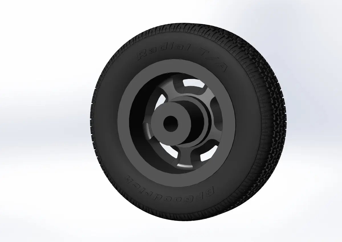 3D-printable wheels Pontiac Rallye II (rims and tyres separately) for your scale model. Rims OEM: 15x7; Tyres - BFGoogrich, 225/60 R15 with a detailed tire tread pattern and inscriptions on the tire sidewalls