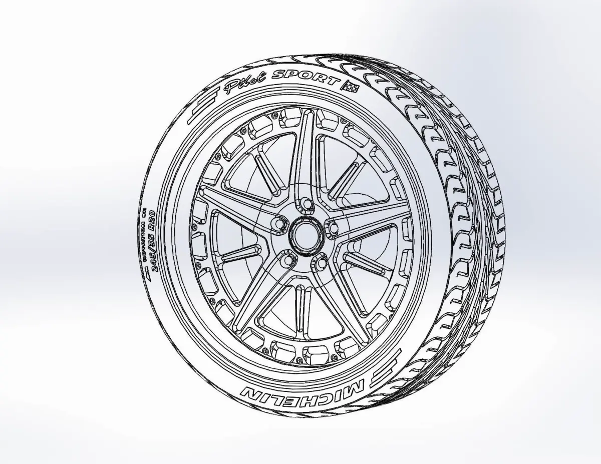 3D-printable model of a wheel (including the rim and tire — both as separate parts and as a single combined piece) for your scale or RC- model. Rims style - Schott Fulcrum PT 20x8.5; Tyres - 245/35 R20 with a detailed tire tread pattern