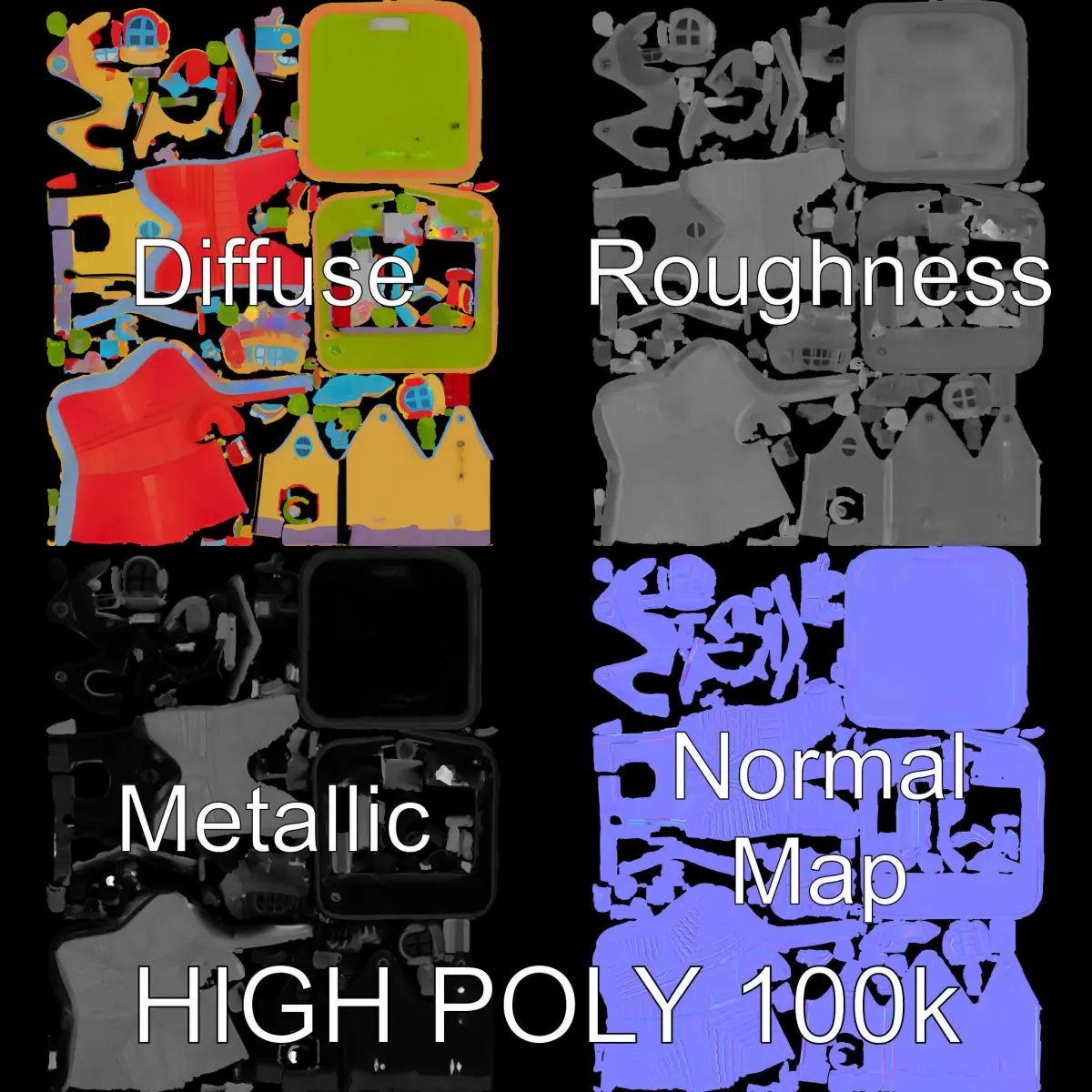 This Whimsical Cartoon House 3D Model Pack features a charming and vibrant design that captures the essence of a playful, storybook world. With three levels of detail—low-poly for mobile, middle-poly for environmental setups, and high-poly for production rendering—this versatile model can be easily integrated into various creative projects. Perfect for use in animated films, children's games, or educational environments, the model's PBR textures, including Diffuse, NormalMap, and reflection/roughness/metallic, ensure compatibility with all modern rendering engines. Each texture is 4096x4096 in size, providing high-quality details for every scene. The model is accurately unwrapped with no overlapping UVs, making it easy to work with in 3ds Max, Maya, Blender, Unity, or Unreal. The first image is the reference used for creating the 3D model. It is important to carefully evaluate the quality of the model by examining the preview images that display the topology and polygonal mesh. These previews (WIRE and WEB 3D Preview) clearly demonstrate how accurately the model matches the original reference and how well the geometry has been executed. If you like this model, please like and leave a comment!