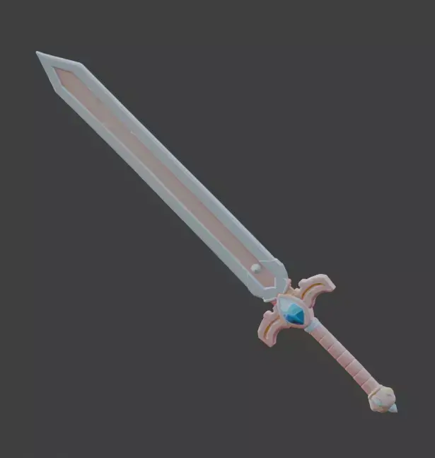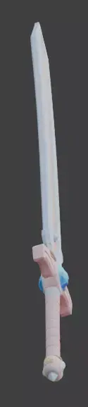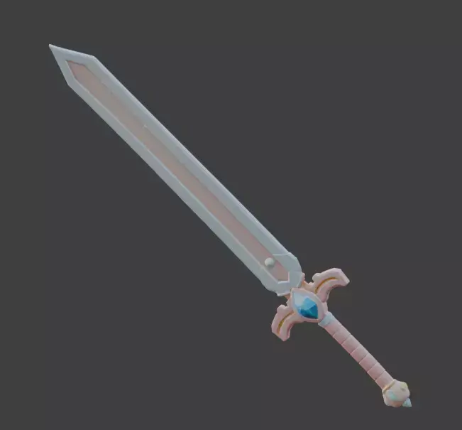 Tagsmagic sword, fantasy weapon, stylized, kawaii, cute, pastel, anime prop, 3d model, game asset, magical girl, rpg item, whimsical, low poly, toy sword, pink, lavender, cartoon, 3d prop, fantasy asset, crystal blade