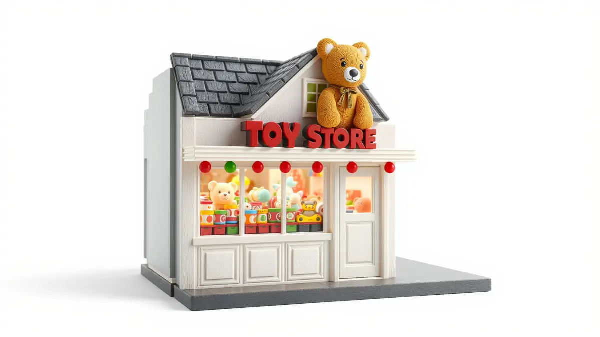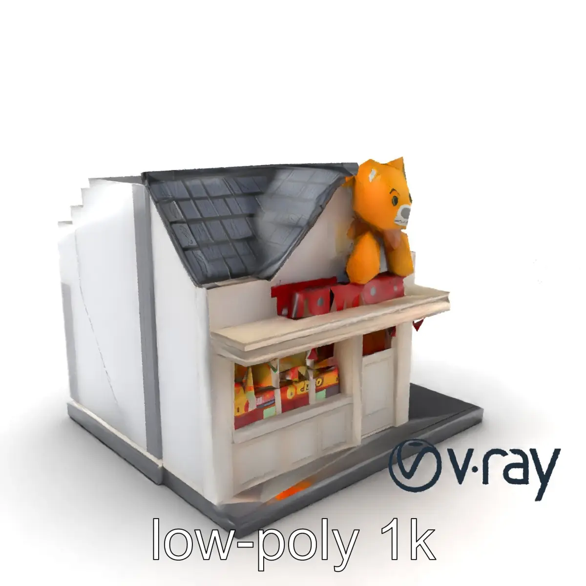This whimsical toy store model features a giant teddy bear sign, colorful windows, and a playful vibe, making it perfect for children's or festive designs. Ideal for creating vibrant scenes in animations, games, or architectural visualizations.