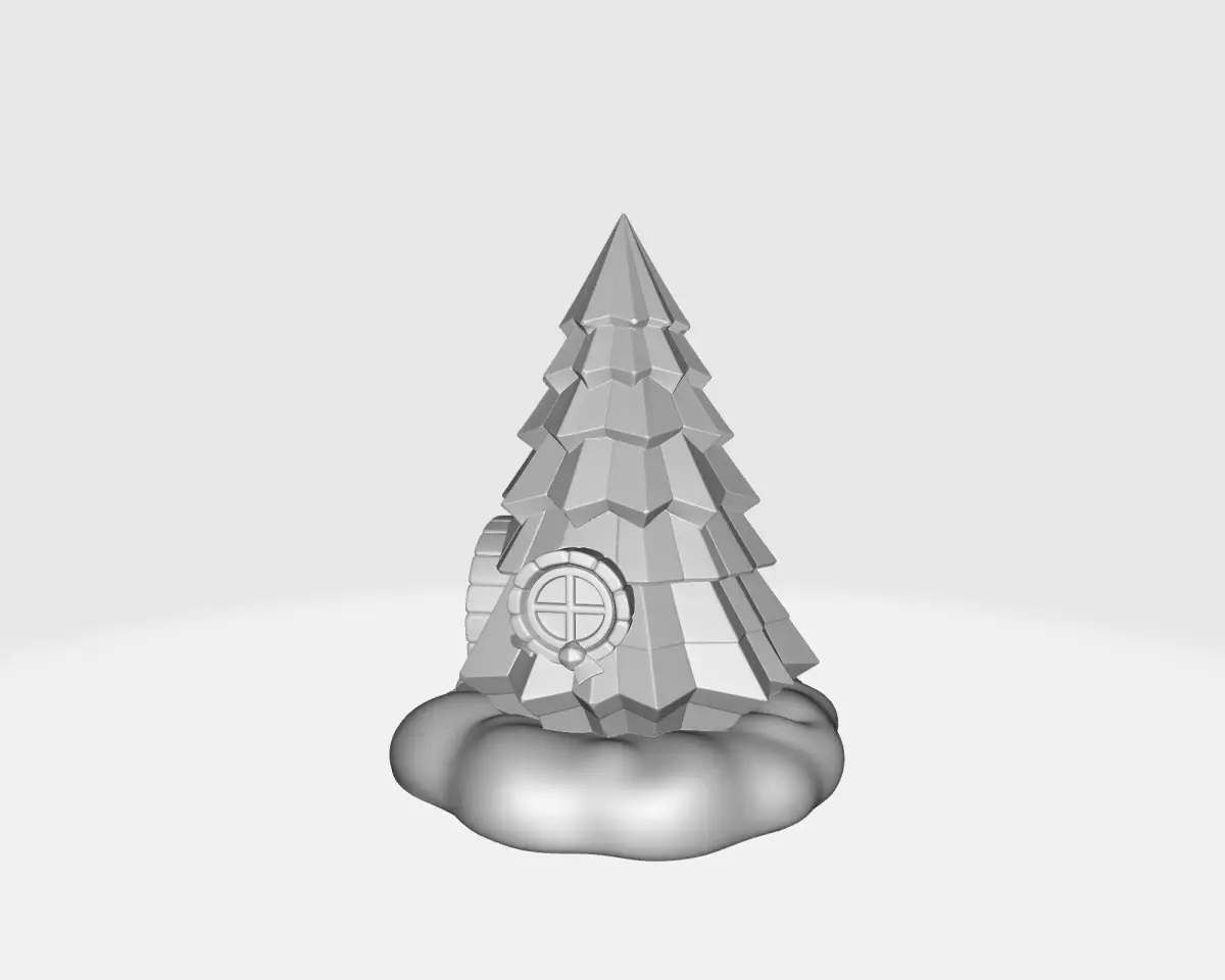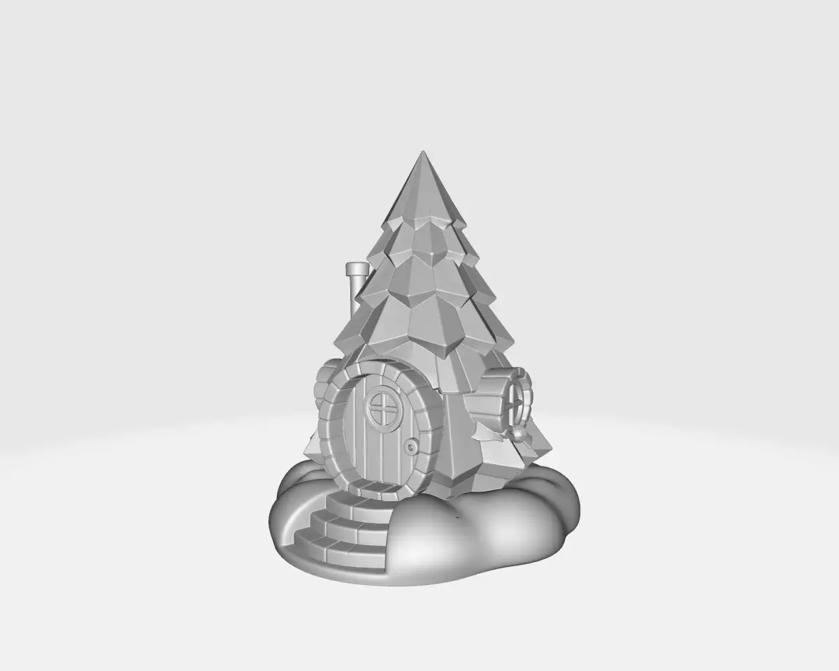 Bring a touch of magic into your space with this delightful 3D-printed Tree Trunk Cottage, designed to look like a cozy home nestled inside a towering evergreen tree. With its charming round door, detailed wood textures, and soft stylized shapes, this piece is perfect for fairy gardens, holiday villages, tabletop RPG settings, dioramas, or as a unique collectible display.Each print is crafted with care, capturing vibrant storybook charm and smooth, polished detail. Whether you're decorating a shelf or expanding your fantasy world, this little cottage brings warmth and imagination to any setting. Perfect as a gift for fantasy lovers, miniature collectors, and creative hobbyists.