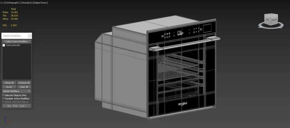 Whirlpool W7OSPBLAUS SteamSense Pyrolytic 60cm Oven is a high quality, photo realistic 3d model that will enhance detail and realism to any of your rendering projects. The model has a fully textured, detailed design that allows for close-up renders, and was modeled in 3ds Max 2018 also has 3ds Max 2015 version and rendered with V-Ray. Renders have no post-processing.