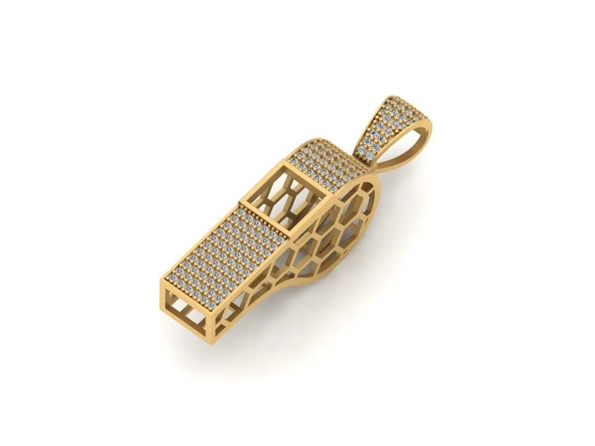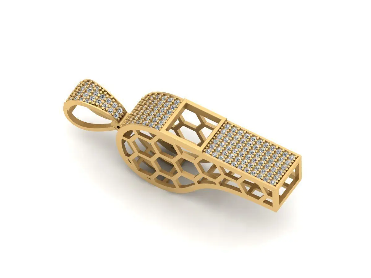 Whistle pendant 3D print model. It's a Very good printable model. This is also editable. Weight - Silver .925 - 6.2g.