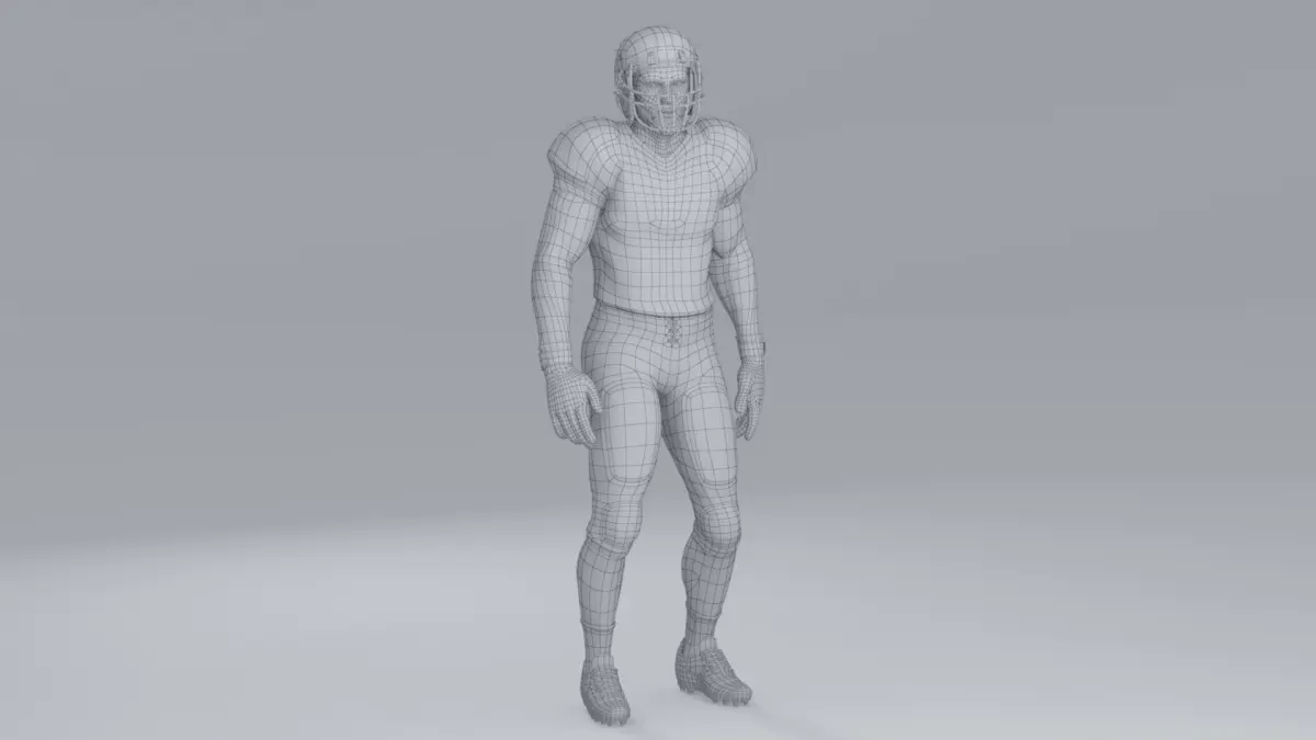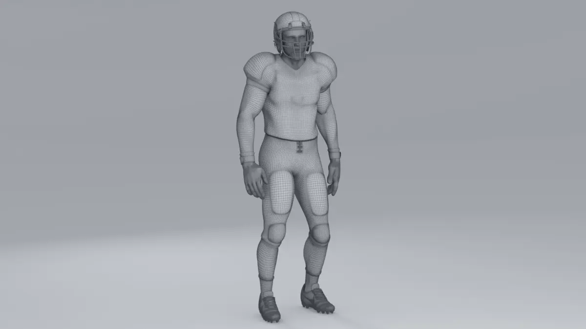 Helmet and chin strap are a single rigged mesh, which allows the chin strap to move along the jaw during an animation.