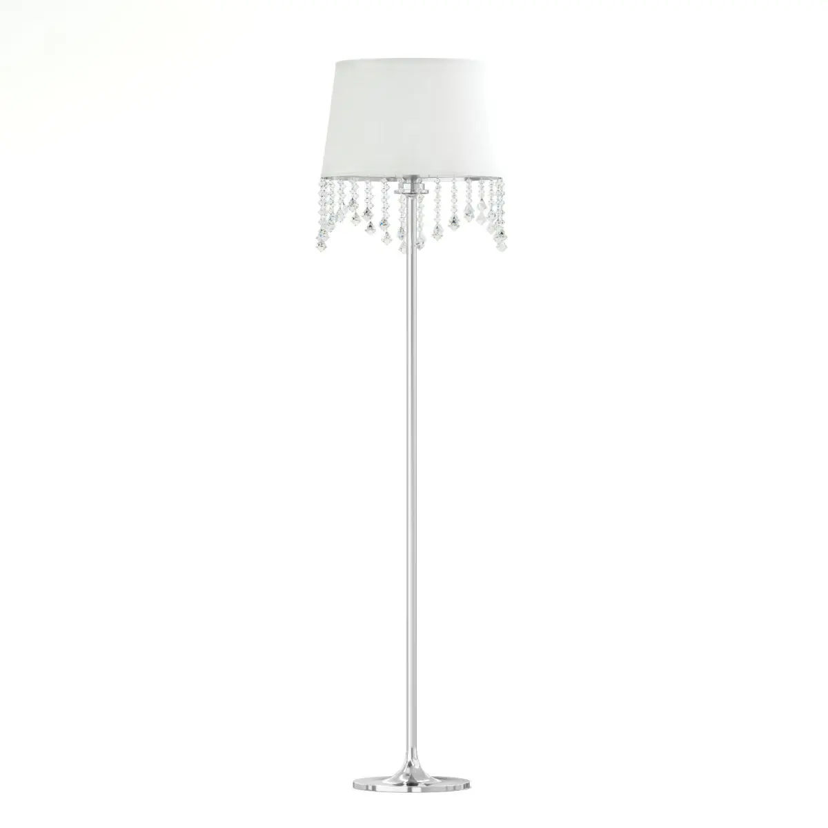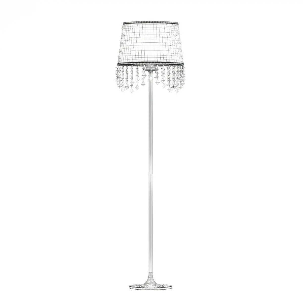 White and metal floor lamp 3d model with semi-transparent lampshade and crystals. Compatible with 3ds max 2010 (V-Ray, Mental Ray, Corona) or higher, Cinema 4D R15 (V-Ray, Advanced Renderer), Unreal Engine, FBX and OBJ.