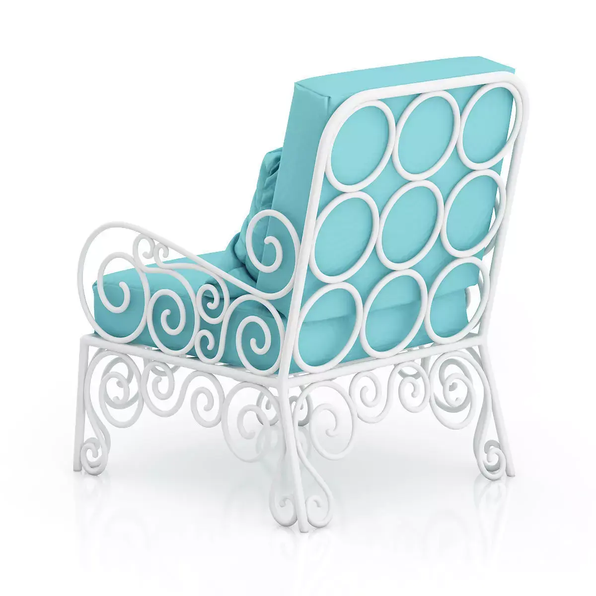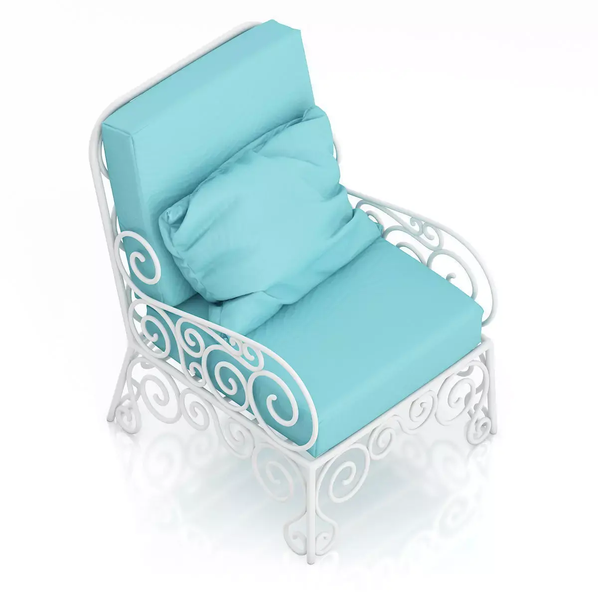 3D model of classical looking white armchair with cyan seat and pillow. Compatible with 3ds max 2010 or higher and many others.
