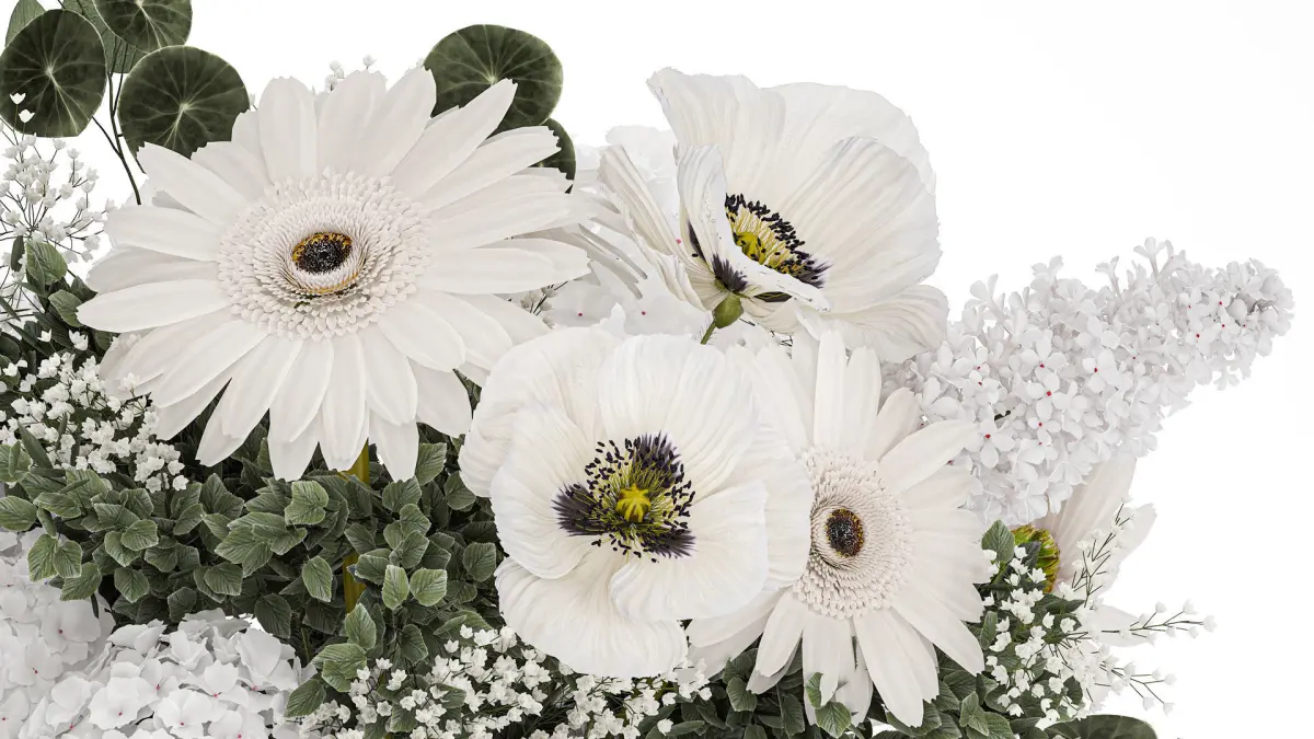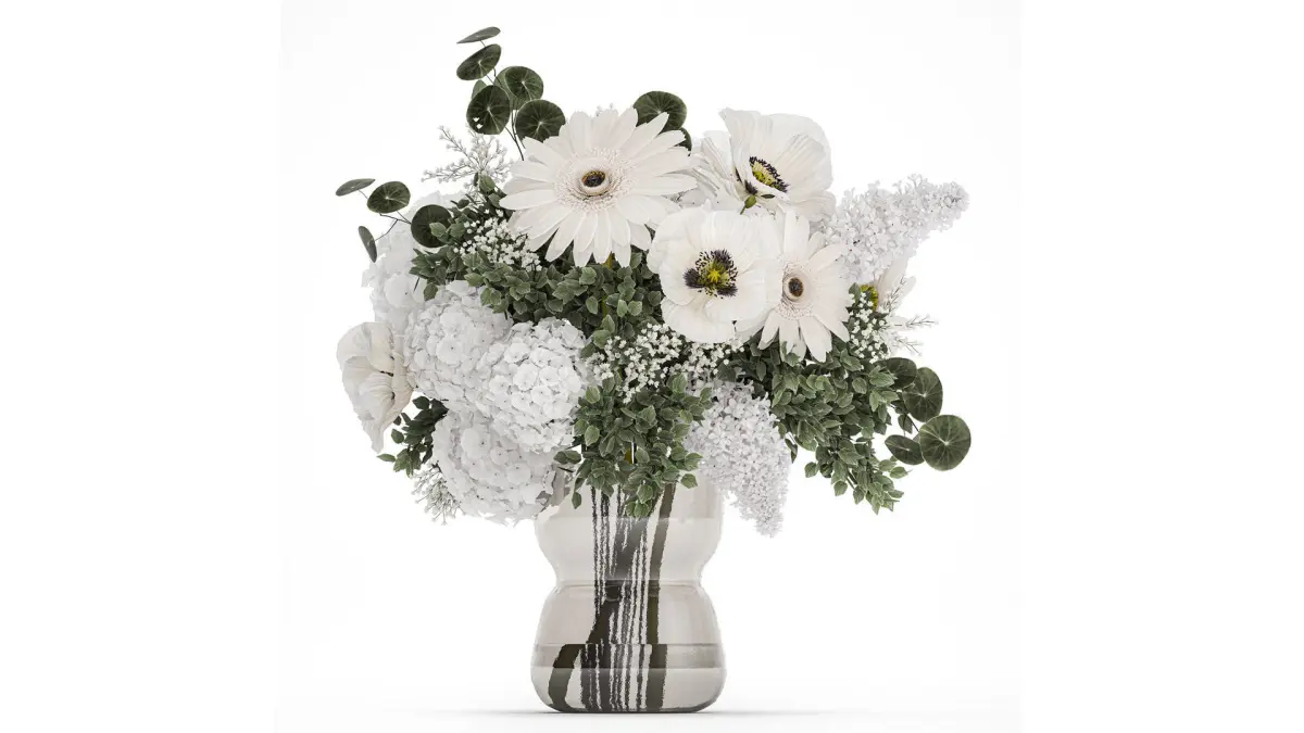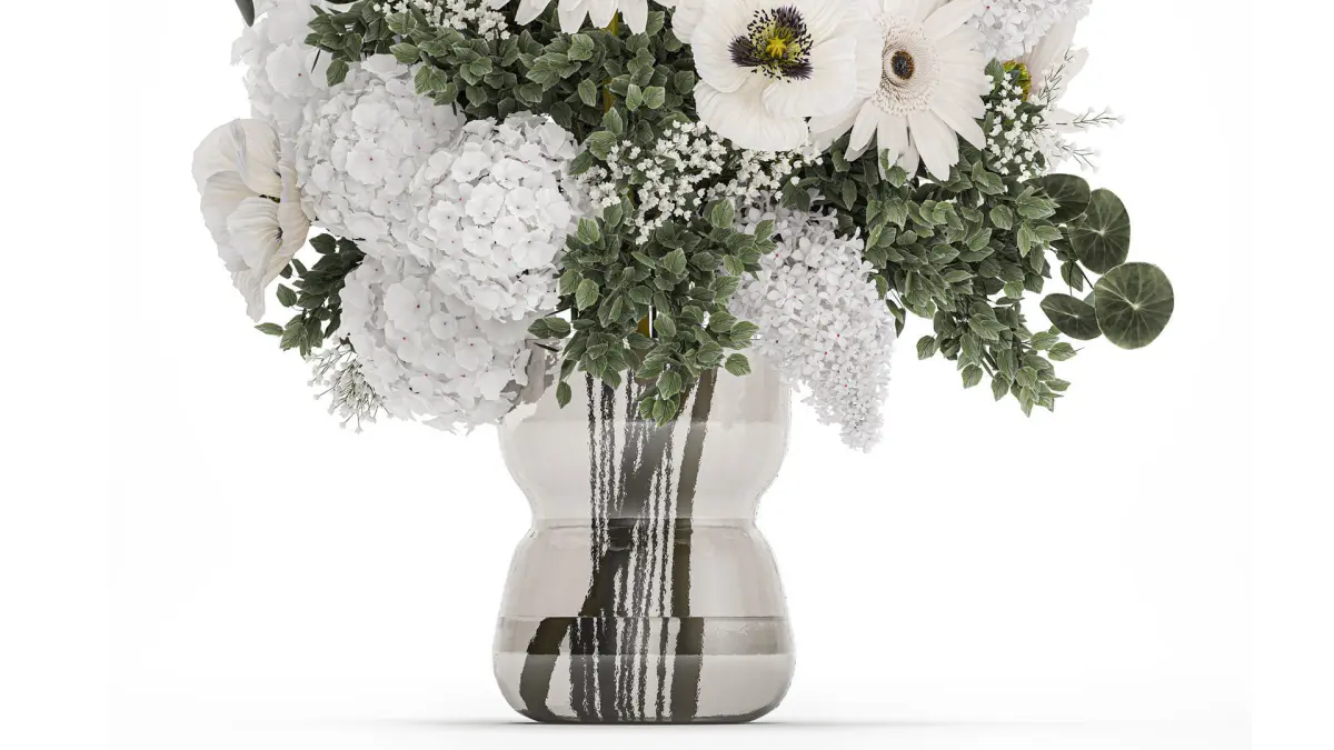 Beautiful small white bouquet of flowers and greenery in a modern glass vase, hydrangea, lilac, poppy. Set 460.Decorative Bouquet of white flowers in a glass vase for decor and interior.Bouquet of branches and flowersbouquet of green leaves and branchesvase with branches, branches in a vaseCorylus, filbert, Hazel - Hazel, hazelhydrangea - white hydrangeaSpring bouquetlilac, Syringa - white lilacStephania Erecta - Stefania ErectaPapaver nudicaule - Poppy bare-stemmed, Icelandic poppyGerbera - Gerbera, DetailsZerberaVase ikea, ikea