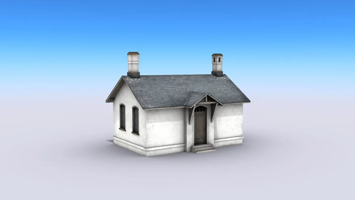 High-quality low-poly 3D model of white brick house building. It is best for use in games and other VR / AR, real-time applications such as Unity or Unreal Engine.