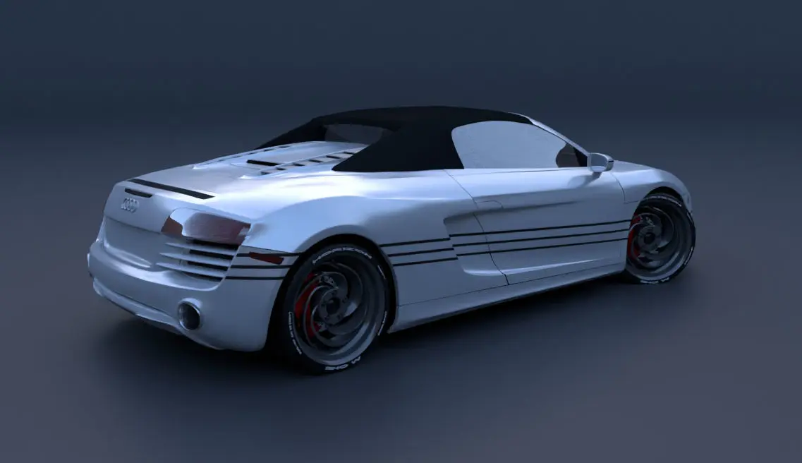 What you get:• Car model based on Audi R8 Spyder• Good topology• Unique tires with rims, designed by myself• Car is fully rigged and ready for animation• Model is ready to render• Very simple interior• Materials are correctly named and can be changed easly• The model has real dimensions• Model was completely made with Blender, and it is optimized for it• Model is rendered in Blenders CyclesI hope you like it. Have fun with it. If you have any questions, please contact me.Note: Obj and FBX file is limited, means there is no material, no texures and no rig. There is only topology!