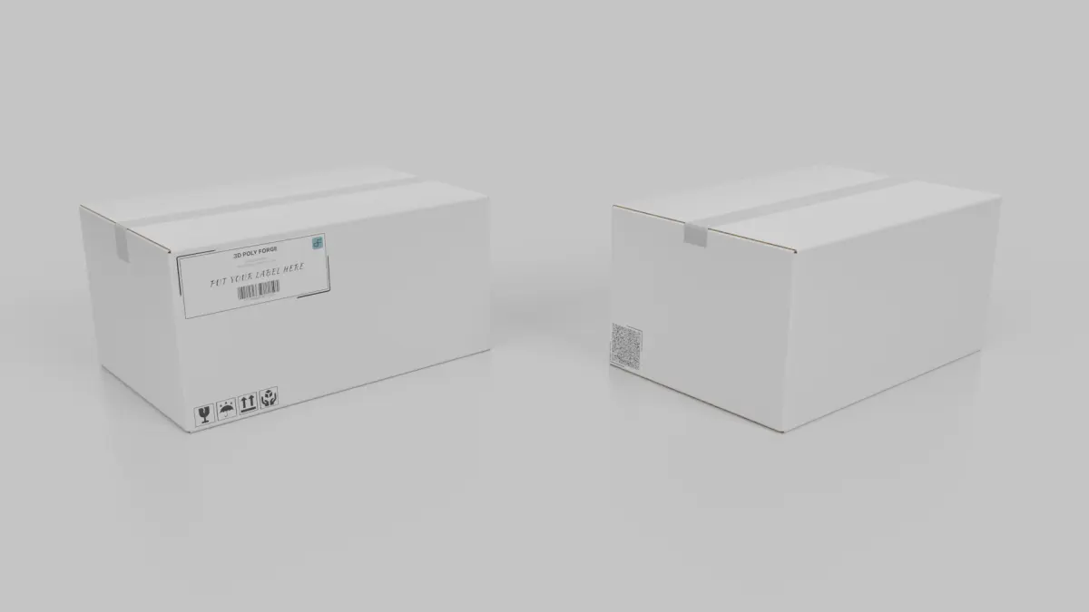 - Realistic Design: It depicts the real-world white cardboard box surface look, bumps, and imperfections with the box flutes visible in the sidings of the box.