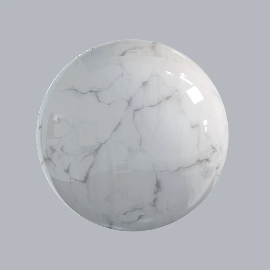 White Marble PBR Material: -Diffuse-Reflection-Glossiness-Fresnel IOR-Normal