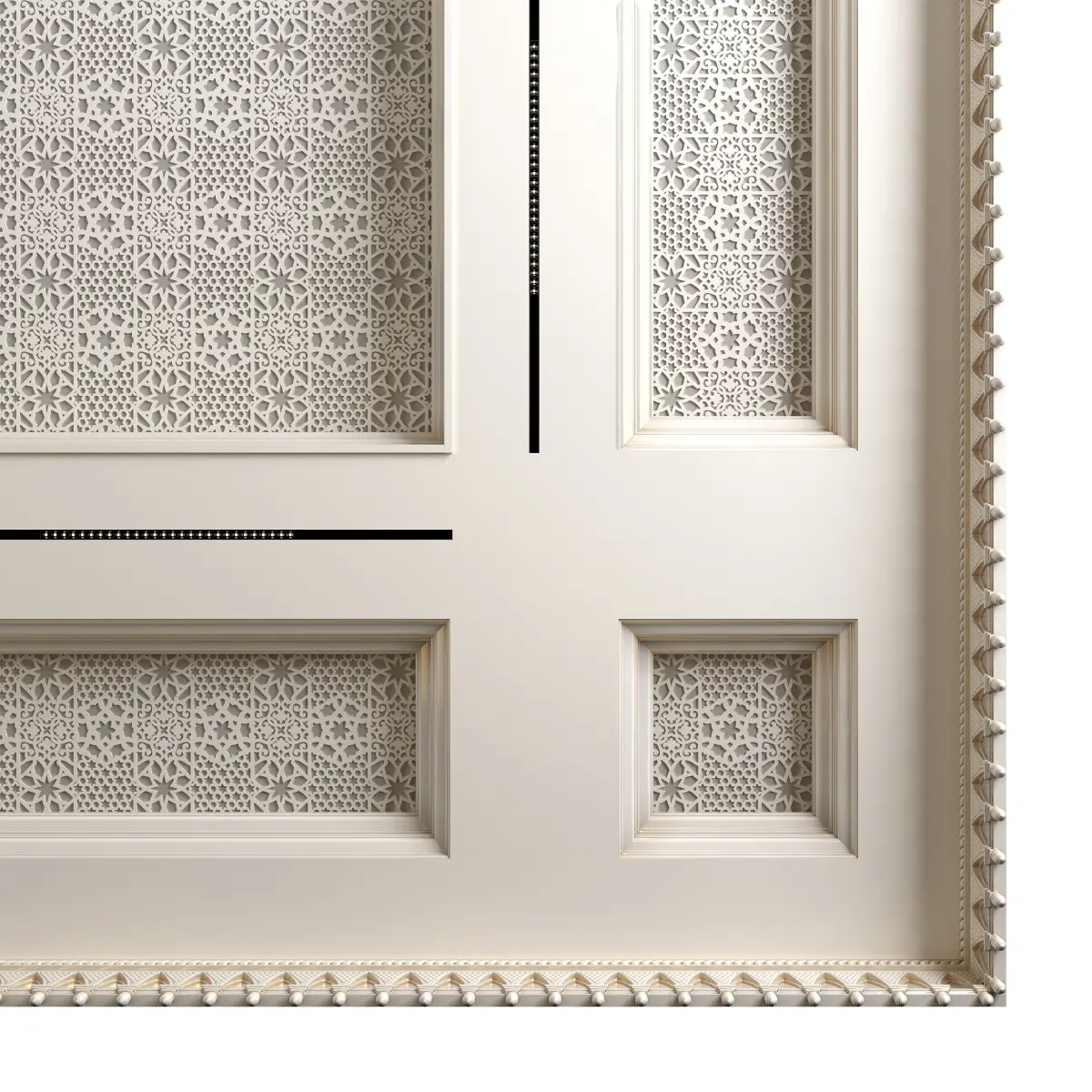 This ceiling is an excellent example of Islamic architecture and interior design that reflects the rich culture and traditions of the region. The Magnetic LED Track System emphasizes it's relevance and modernity. It can be used to create realistic visualizations of interiors in the oriental style.