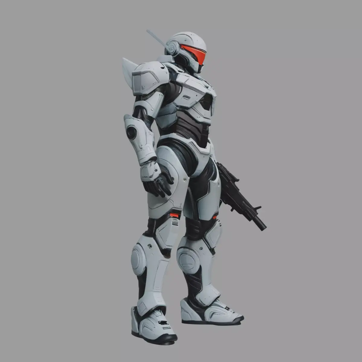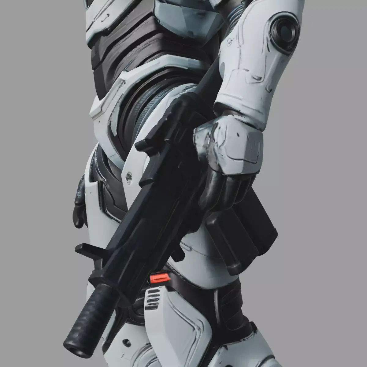 This White Cyber Combat Soldier is a highly detailed 3D model of a futuristic, battle-ready android. It features a sleek silver and black armor design, accented with a striking red visor and subtle red LED details, creating a menacing yet professional combat silhouette.The model is ideal for use in sci-fi games, cinematic animations, or military concept art, where a high-tech elite soldier or cybernetic enforcer is needed. Its realistic wear and tear on the armor surfaces add authenticity, making it perfect for immersive storytelling.