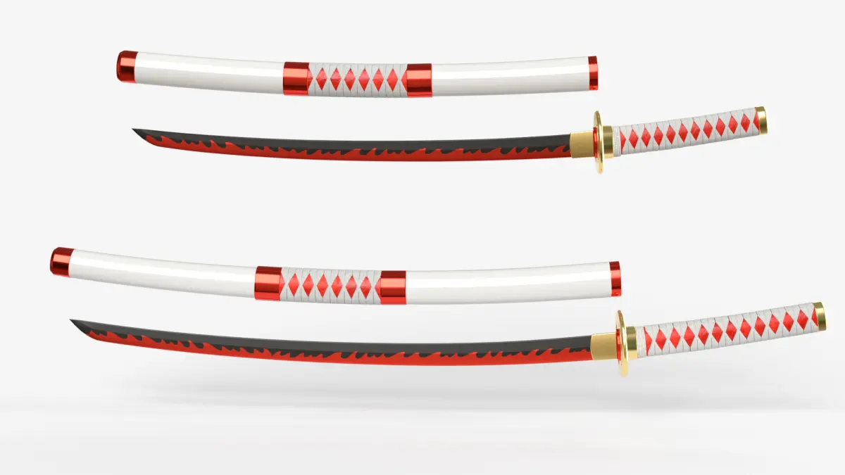 - White Double Bladed Samurai Katana Wakizashi FBX in format, including textures.