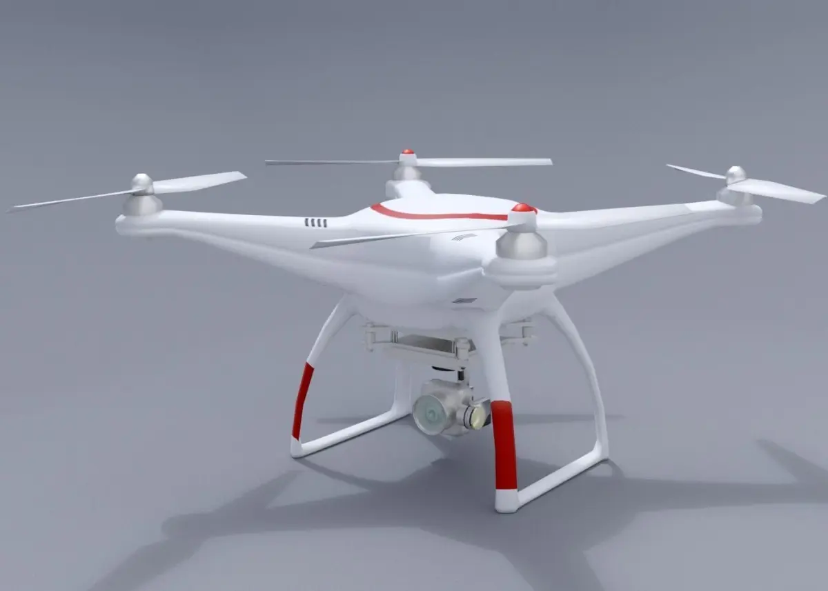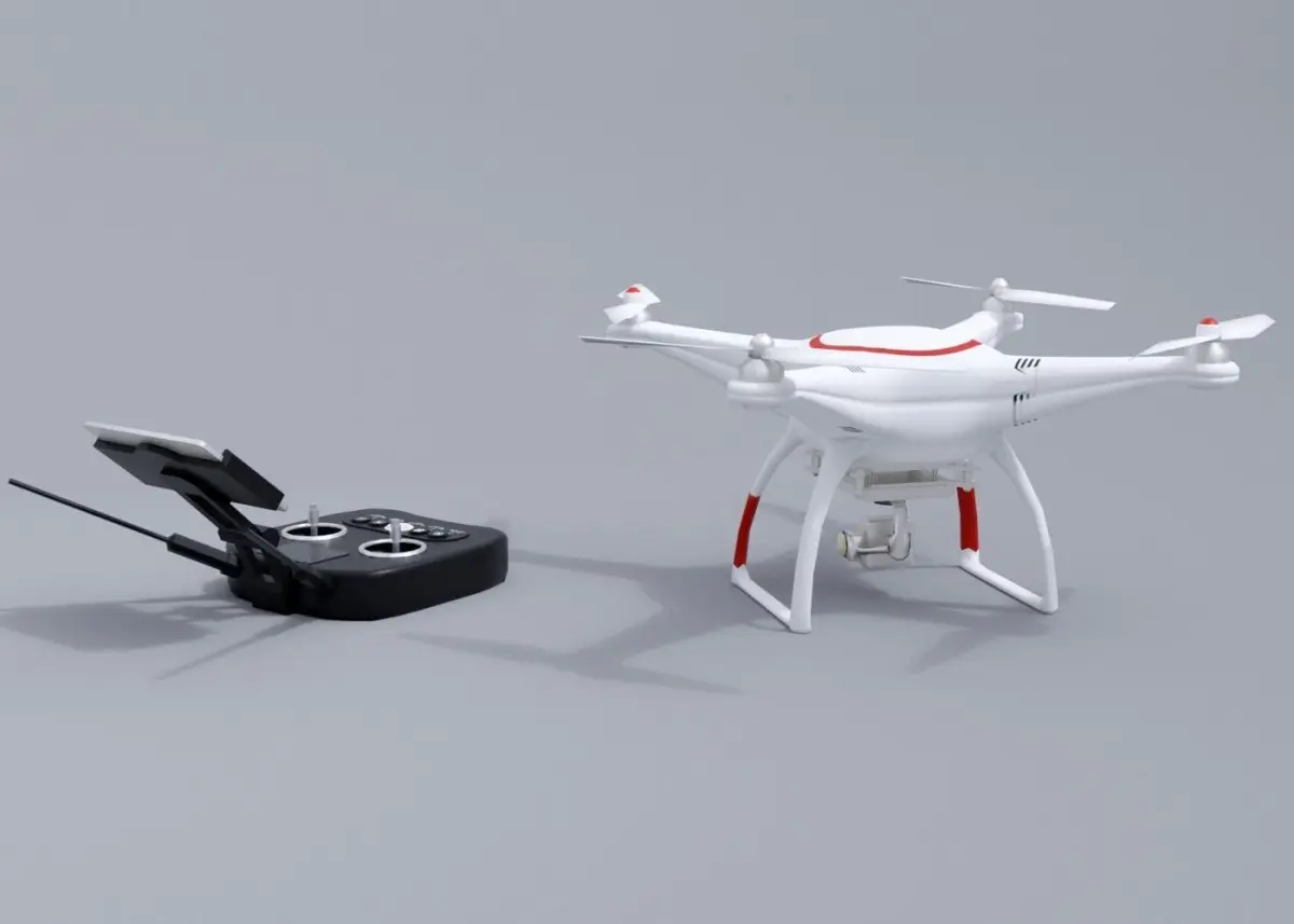 White drone with remote control Low-poly 3D model