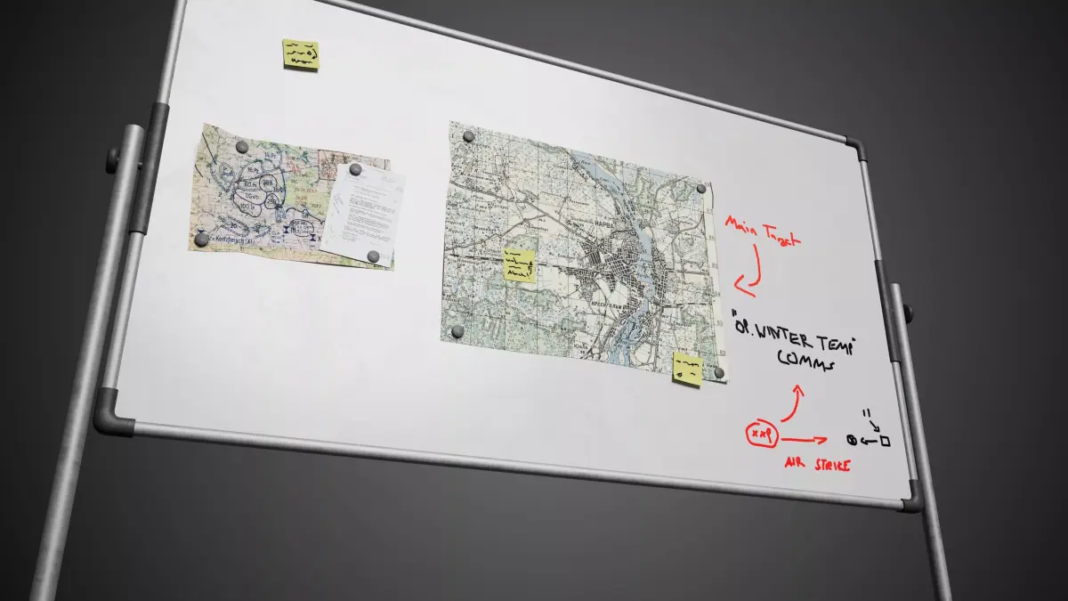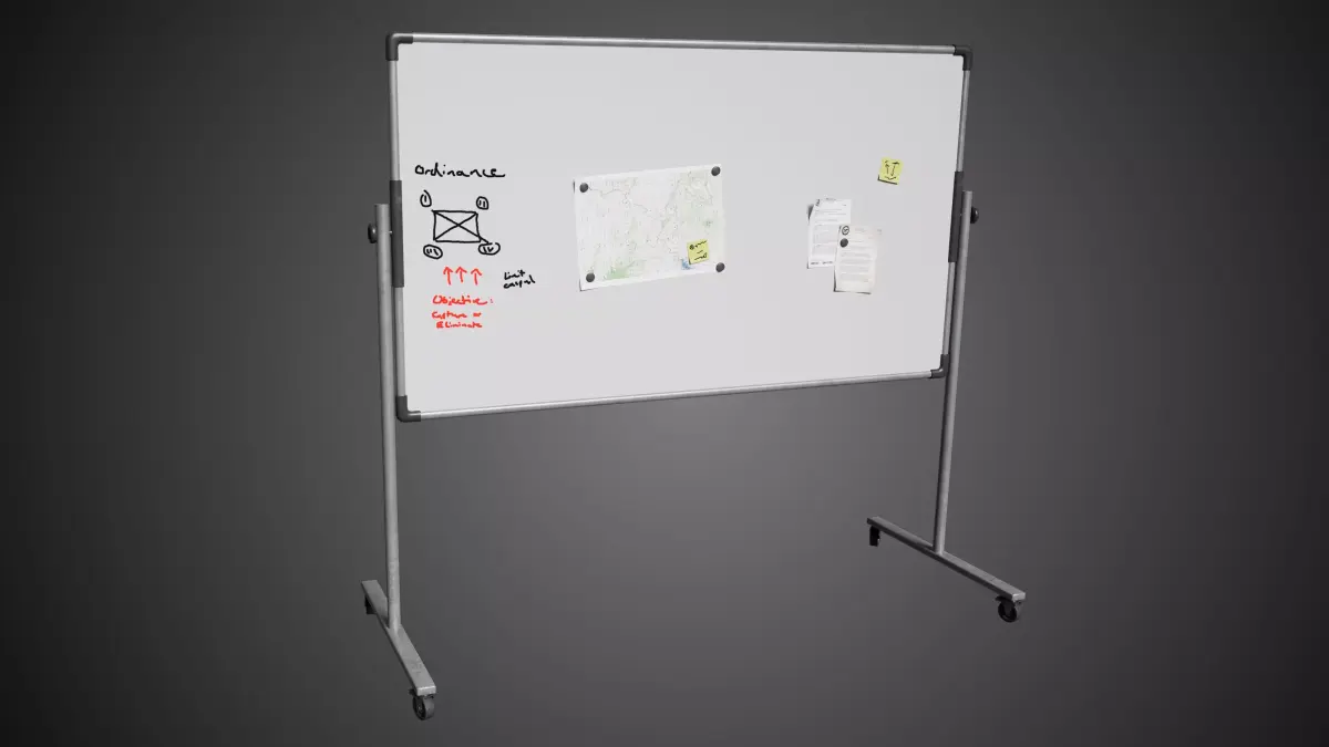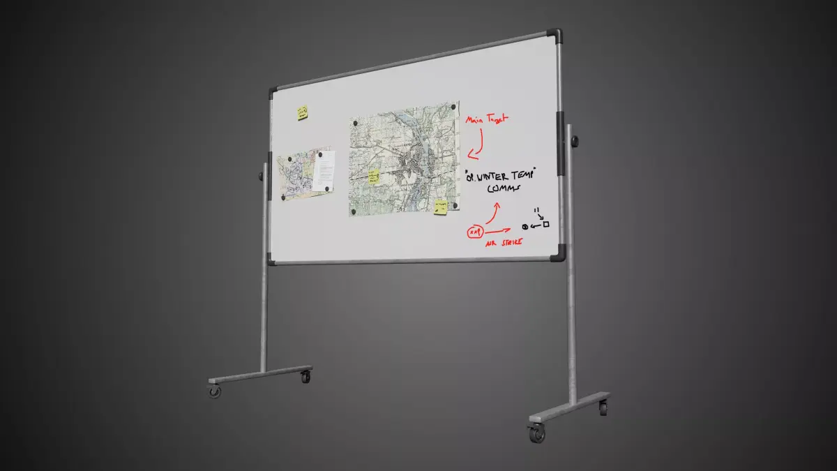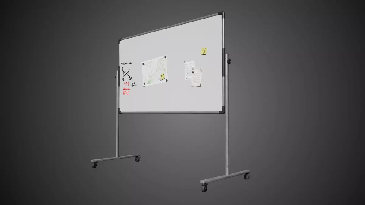 Detailed model of a white dry erase board