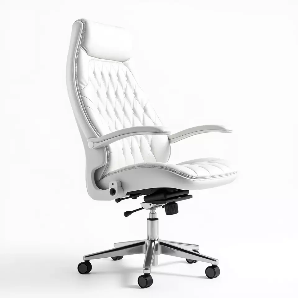 Introducing the White Executive Chair model pack. This sophisticated office chair model features a sleek white leather design with a high back and cushioned ergonomic support, perfect for modern office settings.