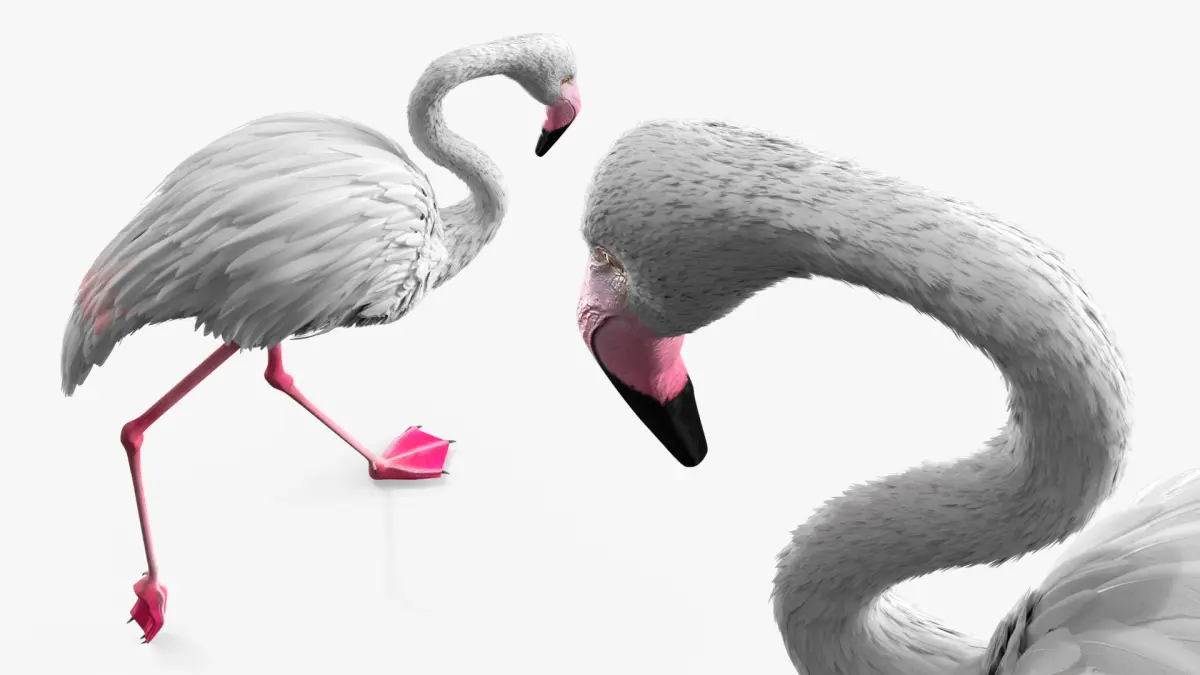 White Flamingo Bird in Walking Pose is a high quality, photo real 3d model that will enhance detail and realism to any of your rendering projects. The model has a fully textured, detailed design that allows for close-up renders, and was originally modeled in 3ds Max 2020 and rendered with V-Ray. Renders have no postprocessing!