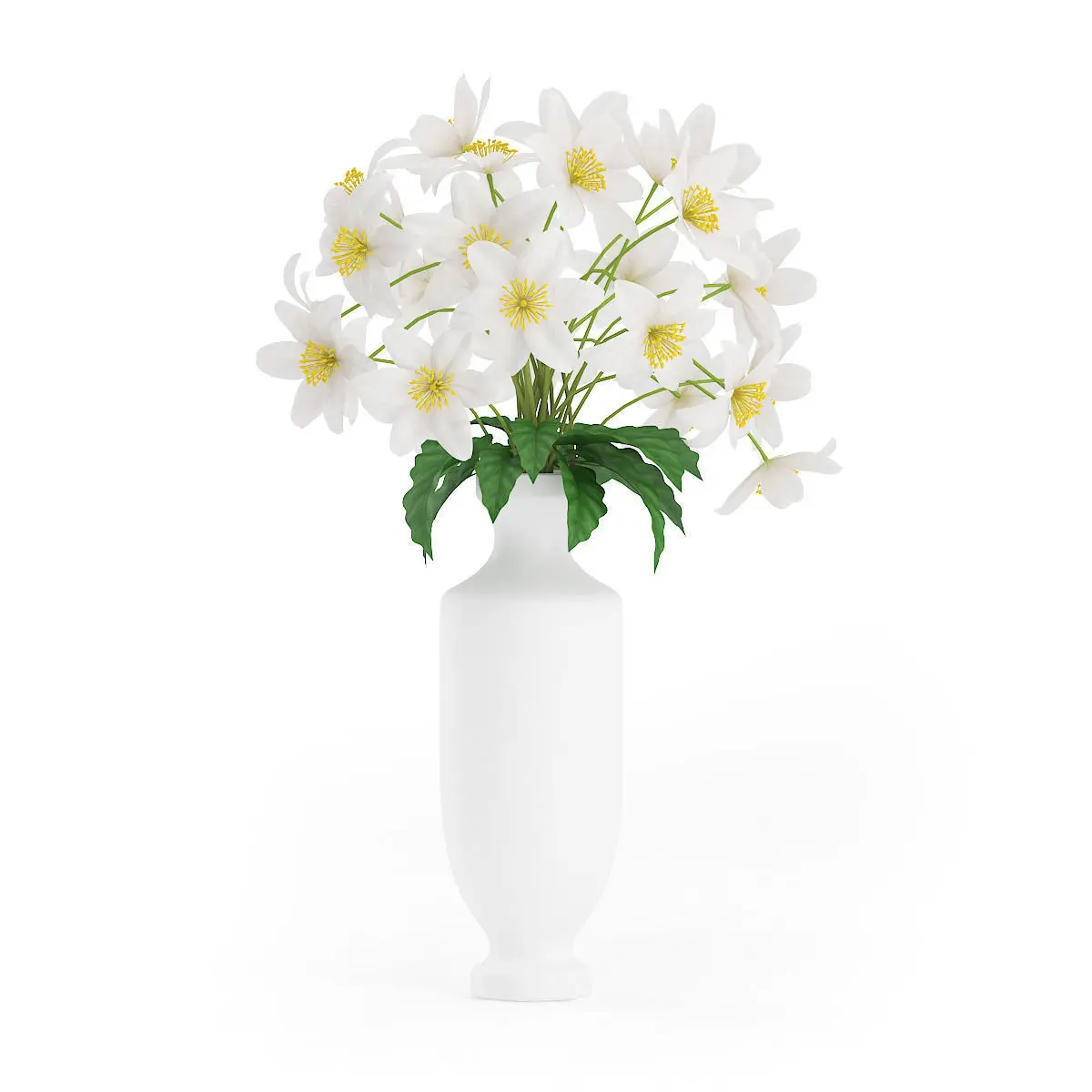 White Flowers in Tall Vase 3D model