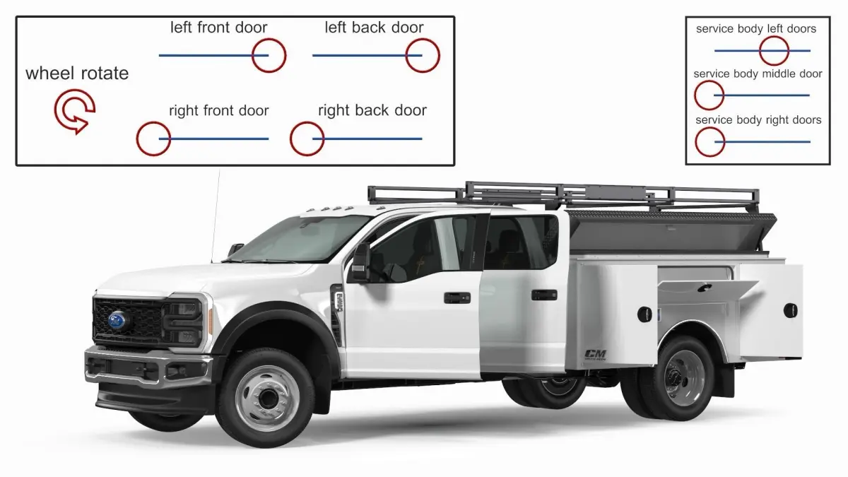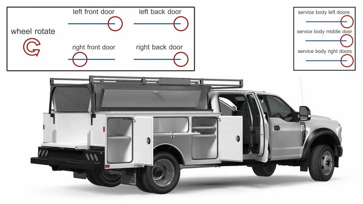 White Ford Super Duty F550 with Service Body Rigged is fully rigged and is ready to be animated. You can easily position it the way you need or animate it the way your project requires using helpers in 3D Studio Max. See the turntable to get an idea of how rigging works.