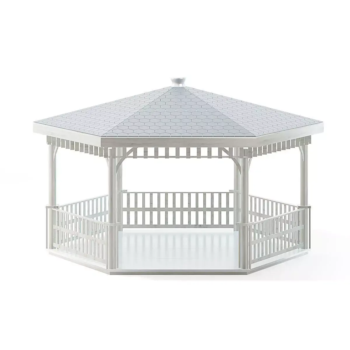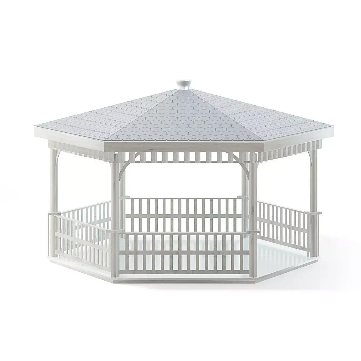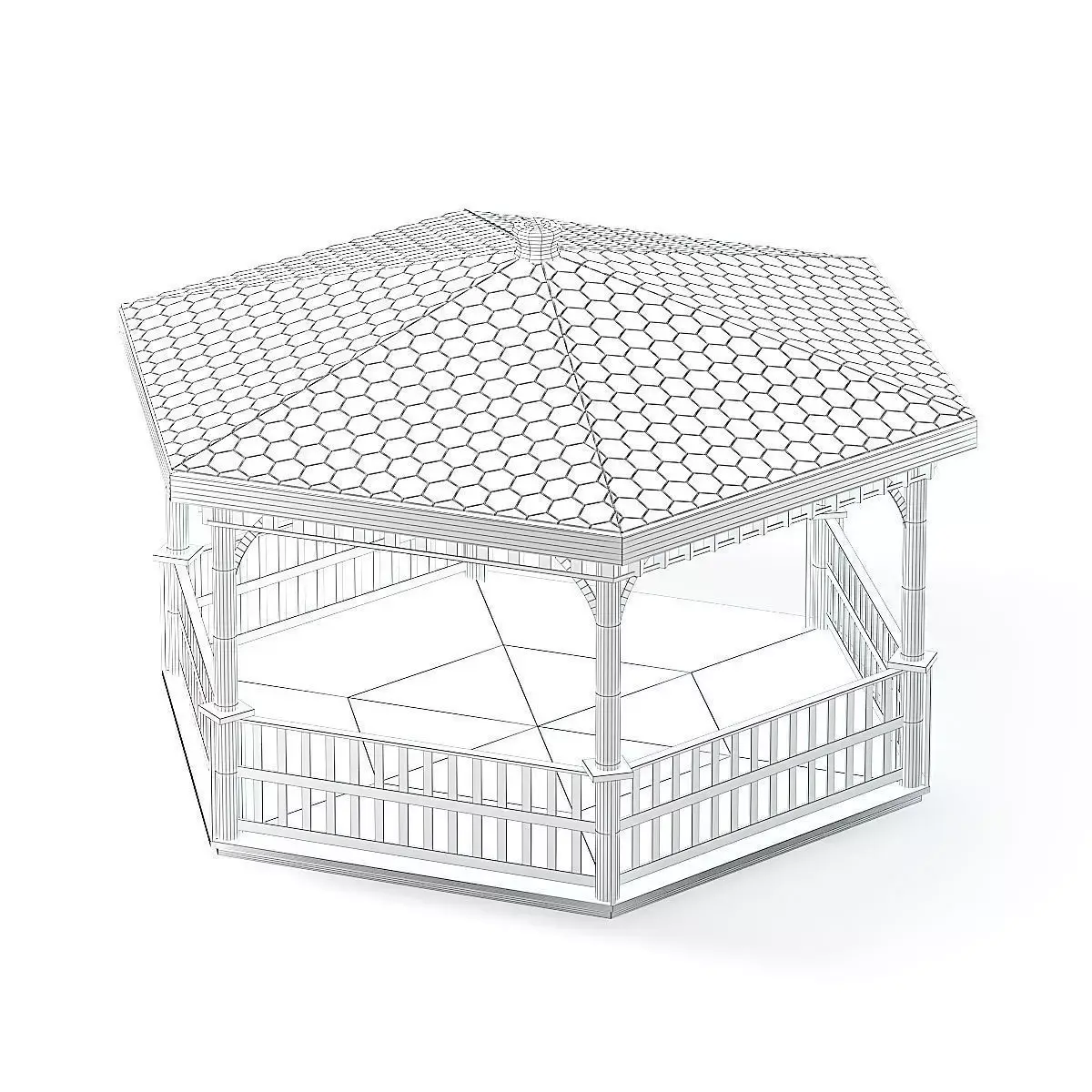 Large white garden gazdebo 3d model in a hexagonal shape. Compatible with 3ds max 2010 or higher Cinema 4D and many more.