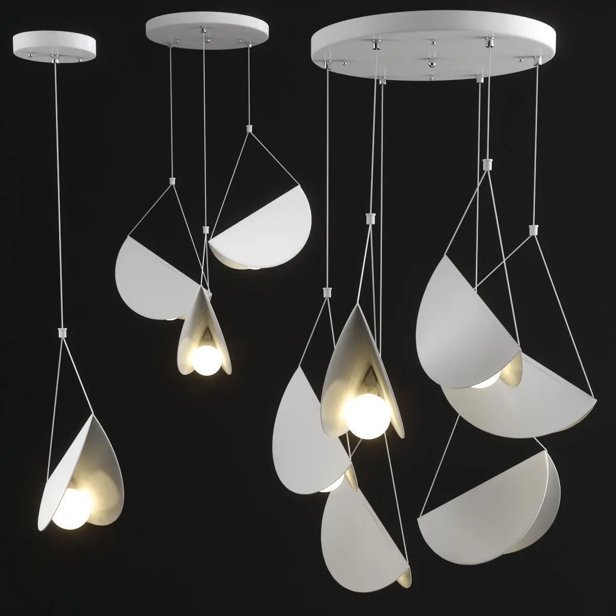 Height: 15cmPolys: 46 084Verts: 48 540XForm: yesRender: V-Ray 5Formats: 3Ds Max 2013, OBJLink:https://www.tudoandco.com/collections/all/products/white-glider-pendant-light-chandelier