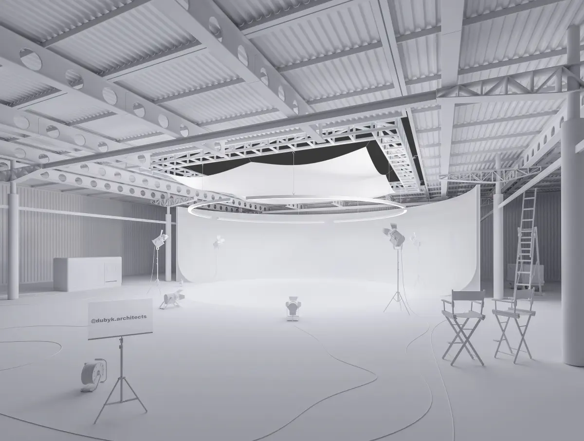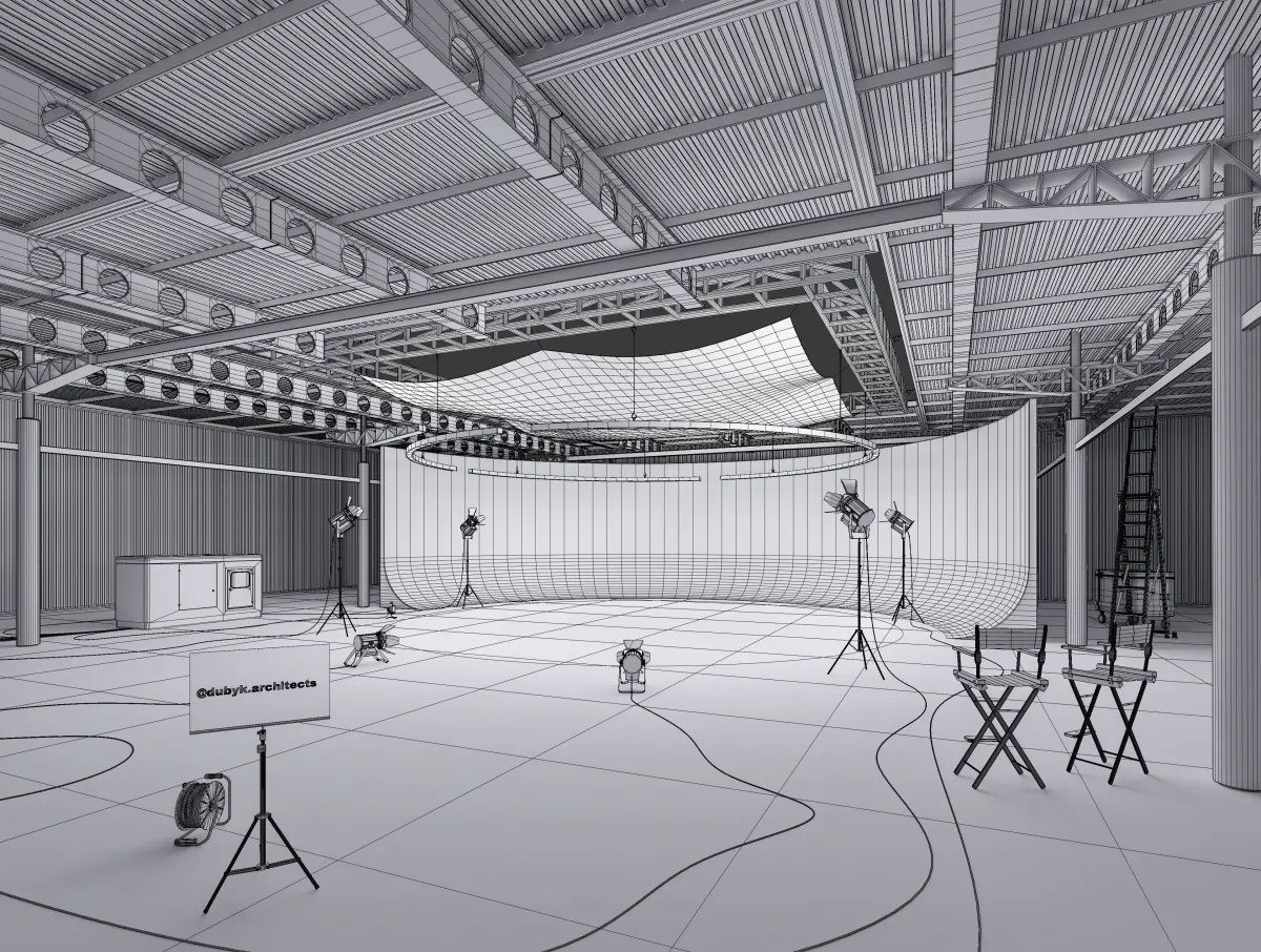 Hangar dimensions: 35 m x 27 m x 5m (WxLxH): podium diameter 10m. (h=4m)