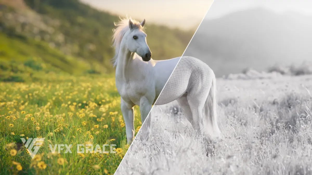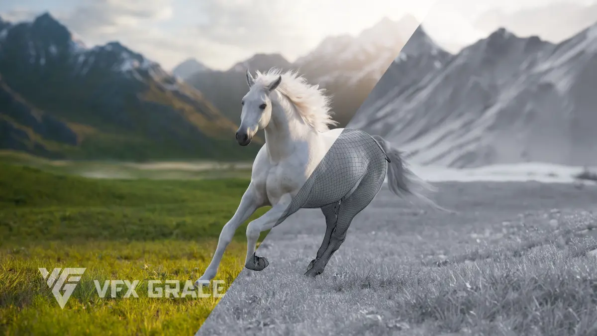 This is a high-quality and nice-looking white horse model with 4K UDIM maps, fur, rigging and a realistic animation. It comes with a realistic muscle structure and a complex hair system created in Blender for a natural and realistic effect. This model is made with Blender and Cycles renderer at real-world scale.