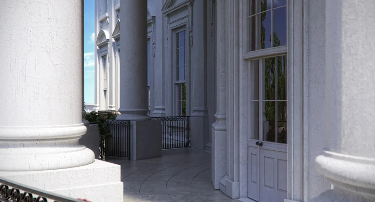Included are west wing with oval office,east wing, all building parts, guard houses, gardens, pool, patio, water fountains, basketball court, golf court and near surroundings with parkings, gates etc