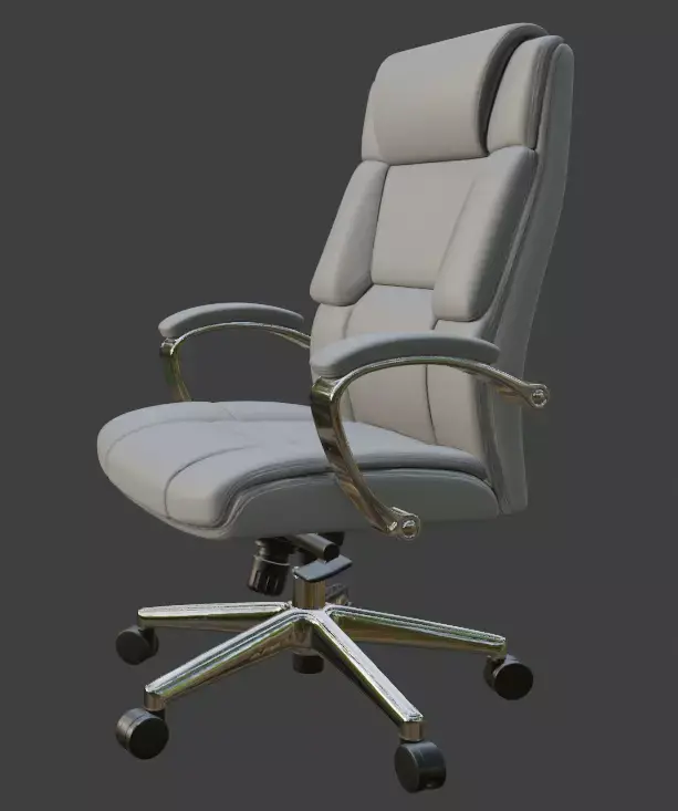 A highly detailed, production-ready 3D model of a premium modern executive office chair with black leather upholstery and polished chrome base. Perfect for architectural visualizations, office interior renders, game environments, VR/AR projects, or high-end product visualizations.This model features clean topology, fully unwrapped UVs, and PBR materials ready for any render engine. The leather material uses realistic textures including high-resolution diffuse, roughness, normal, and specular maps (4K). All parts are properly named and organized in logical groups for easy editing.Includes adjustable height mechanism, tilt function, and rolling casters — all modeled with accurate real-world scale and mechanical detail.