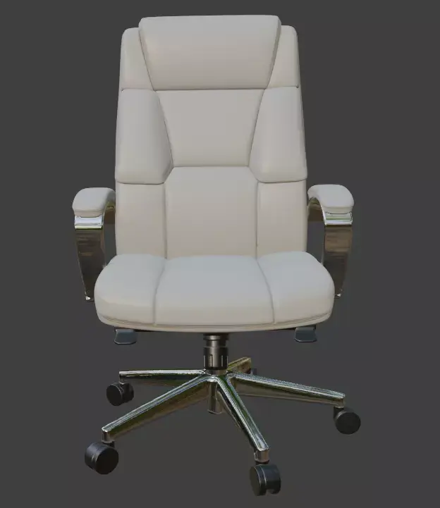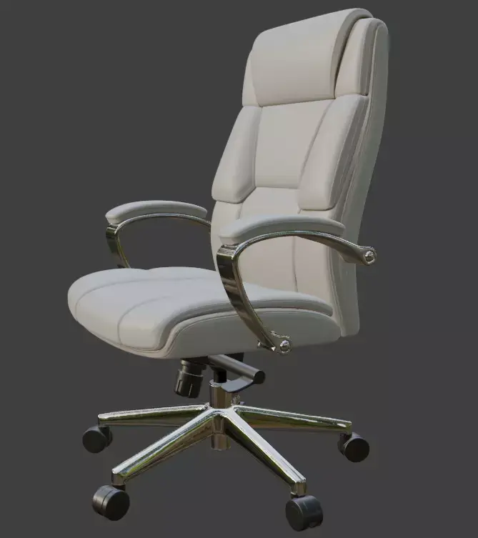 A highly detailed, production-ready 3D model of a premium modern executive** office chair** with white leather upholstery and polished chrome base. Perfect for architectural visualizations, office interior renders, game environments, VR/AR projects, or high-end product visualizations.This model features clean topology, fully unwrapped UVs, and PBR materials ready for any render engine (Cycles, V-Ray, Arnold, Corona, etc.). The leather material uses realistic textures including high-resolution diffuse, roughness, normal, and specular maps (4K). All parts are properly named and organized in logical groups for easy editing.Includes adjustable height mechanism, tilt function, and rolling casters — all modeled with accurate real-world scale and mechanical detail.Ideal for professional 3D artists, interior designers, and visualization studios looking for a photorealistic, luxury office chair asset.