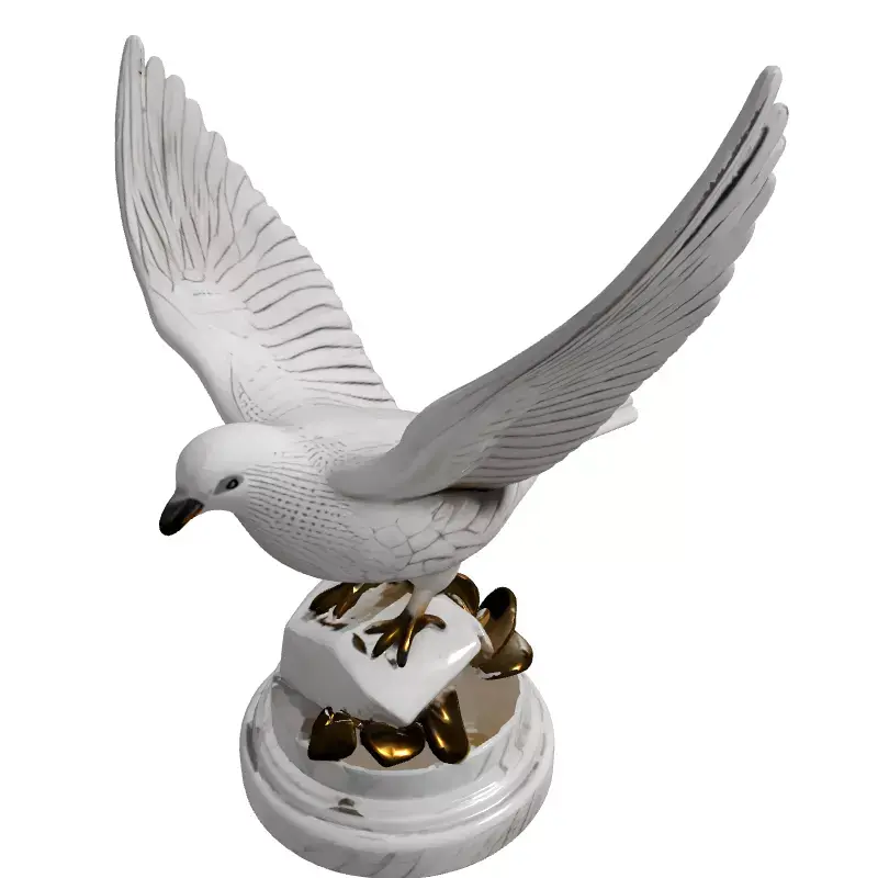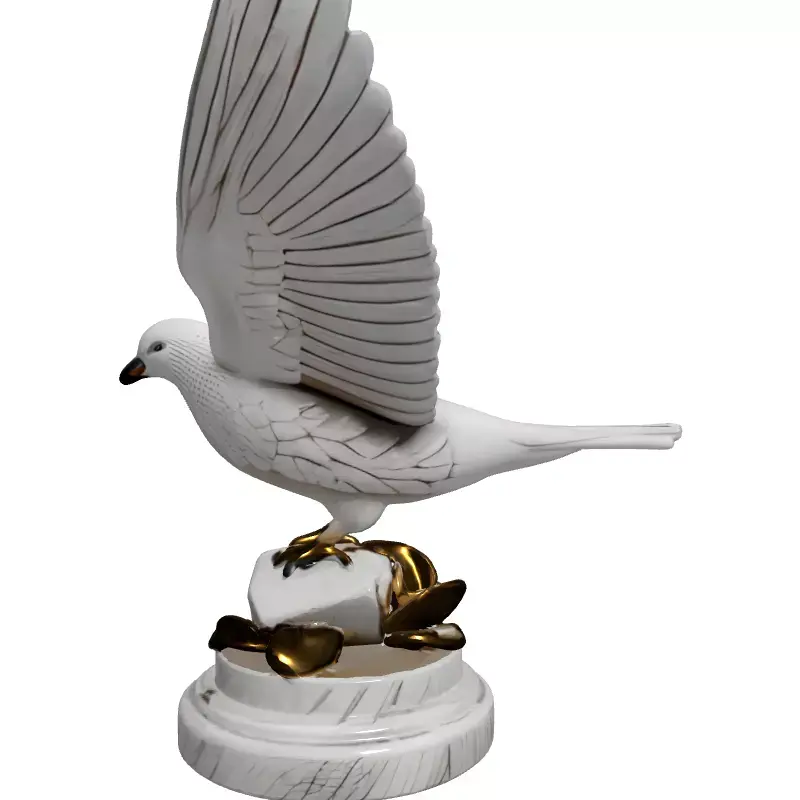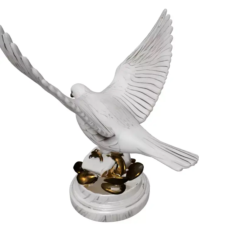 Presenting a meticulously crafted 3D model of an elegant white marble dove statue, poised majestically with wings spread in a symbolic gesture of peace and freedom. This highly detailed sculpture rests upon a sophisticated marble pedestal, tastefully adorned with exquisitely rendered golden leaves, adding a touch of luxury and prestige. The model is ideal for a diverse range of applications, including enriching architectural visualizations, enhancing interior design renderings, serving as a prominent decorative asset in game environments, or adding artistic flair to virtual reality (VR) and augmented reality (AR) experiences. It's also perfectly suited for high-quality digital art, film, and cinematic projects where a refined, classic aesthetic is desired. With clean topology and precise geometry, this model is prepared for static renderings and can be easily integrated into various scenes. The asset supports multiple industry-standard file formats such as GLB, OBJ, STL (suitable for 3D printing), ABC, DAE, FBX, USD, and PLY, ensuring broad compatibility. It features high-resolution UV unwrapped textures, including PBR materials that replicate the natural luster of polished marble and the radiant sheen of aged gold, promising stunning visual fidelity in any render engine. This model is ready for immediate use, offering a timeless piece of digital art.