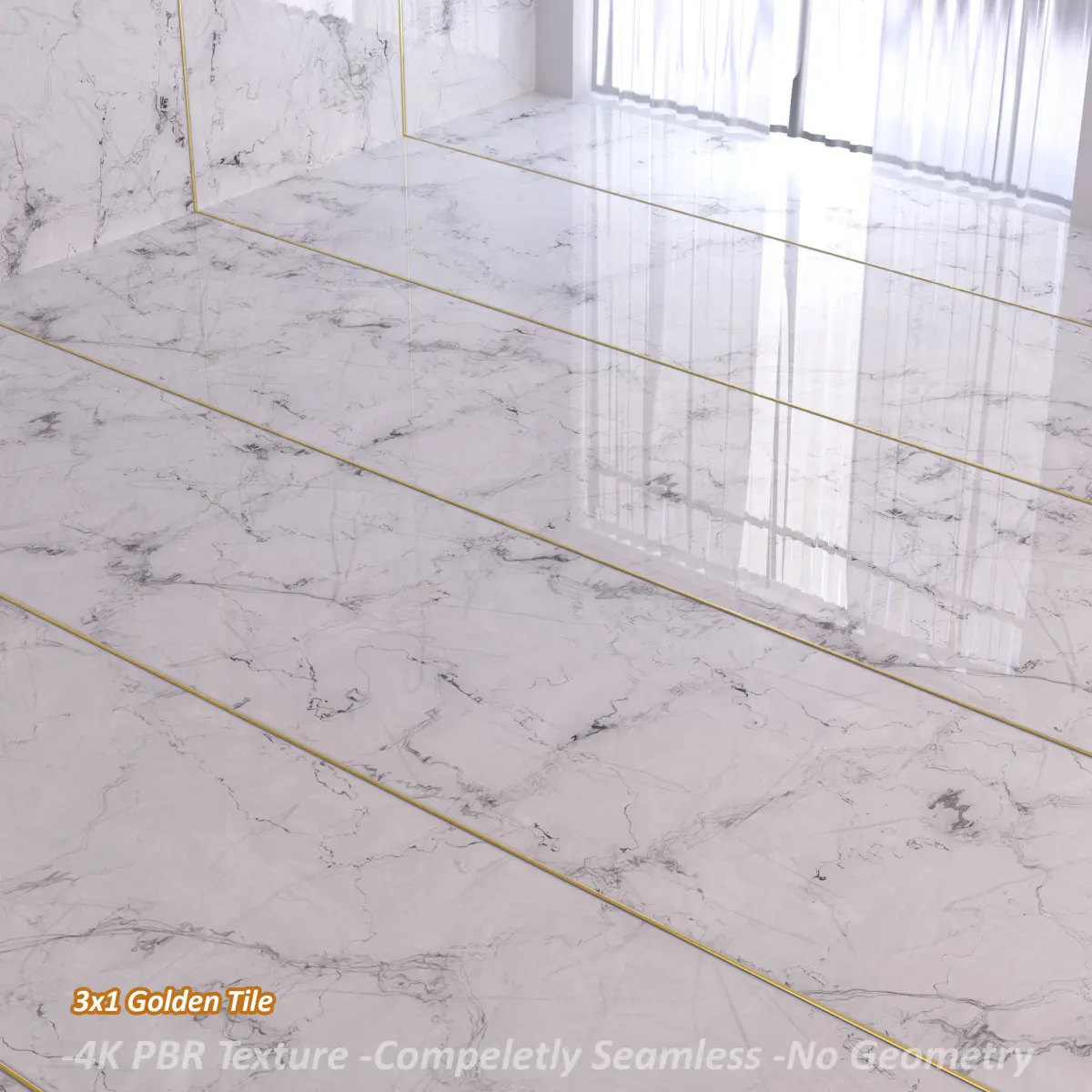 - You have white marble texture in three tile sizes: 3×3 / 3×1 / 1×1 (1×1 Tile has the ability to be used anywhere and is completely Seamless). and also have 3×1 golden tile and 3×3 golden tile-in 4K Resolution