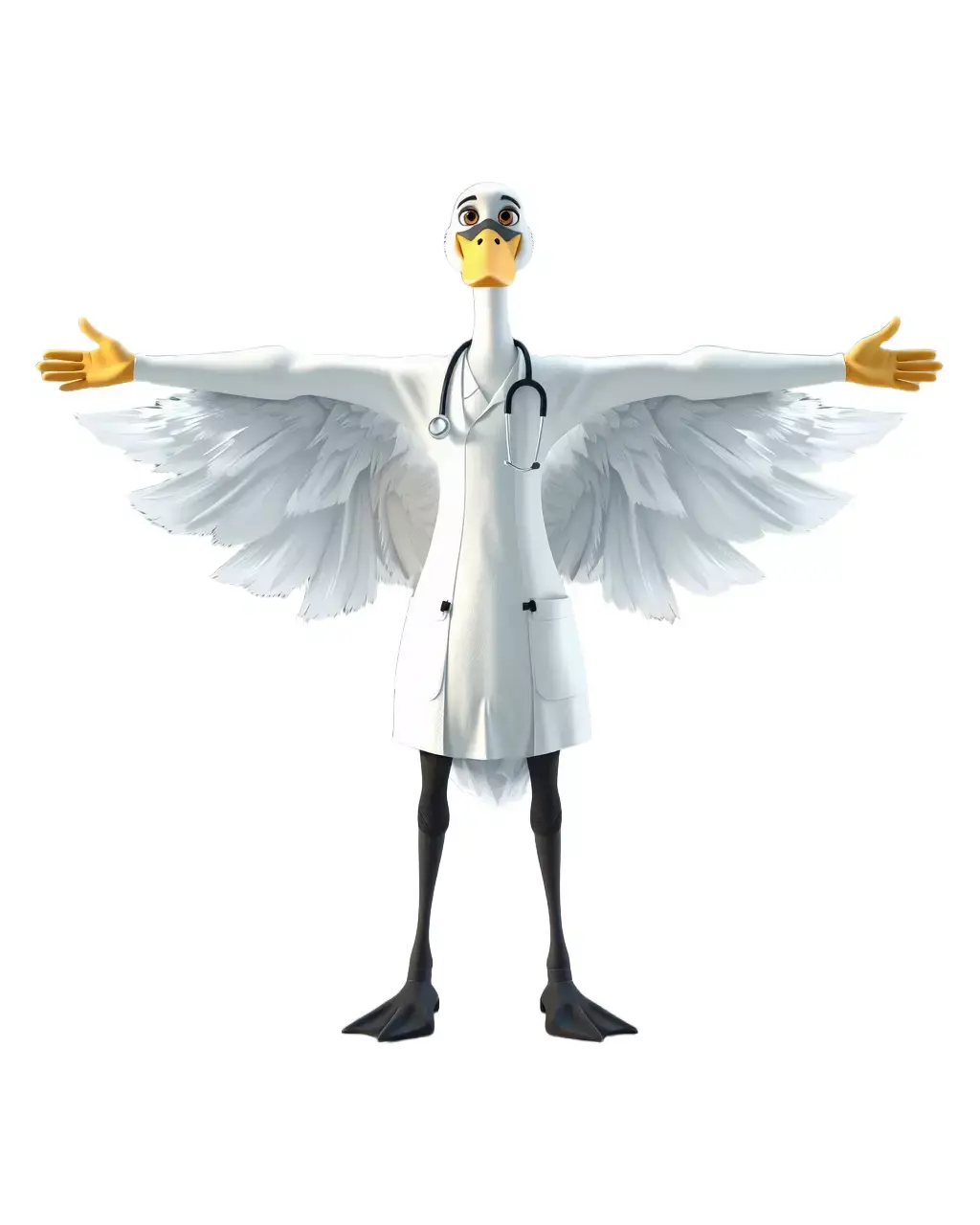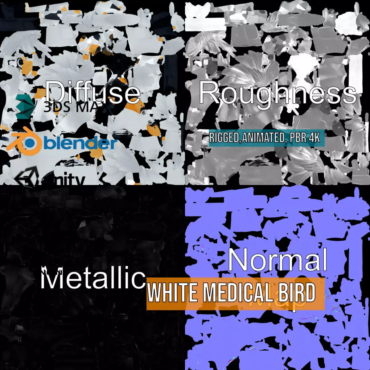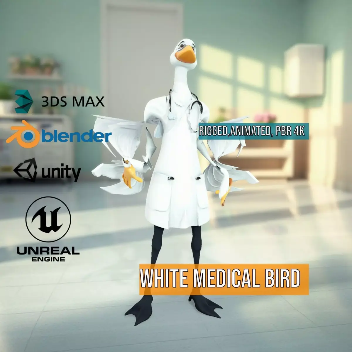This whimsical 'White Medical Bird Doctor' model pack brings a fun and animated character to your 3D assets. Featuring a cartoonish bird in a doctor's outfit, it is ideal for educational animations, children’s games, or thematic medical presentations. Each model has 3 levels of detail: low-poly (1000 triangles for mobile), middle-poly (10,000 triangles for environment), and high-poly (100,000 triangles), allowing use in production rendering such as 3ds Max, Maya, and more. Fully compatible with game engines like Unity and Unreal, it's perfect for interactive presentations using the LOD System. The textures are PBR, Diffuse, NormalMap, and reflection/roughness/metallic, ensuring suitability for any modern rendering engine. All models are accurately unwrapped with no overlapping UV. Enjoy high-quality 4096x4096 textures. Please like and leave a comment if you appreciate the model!