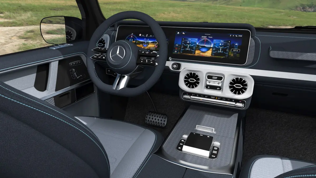 The Mercedes-Benz G580 (2025) is an electric G-Class SUV with a familiar rugged exterior and a futuristic heart. Equipped with four motors, it delivers strong, all-terrain performance. It blends traditional luxury with modern electric innovation, offering a quiet yet powerful driving experience in a refined package.